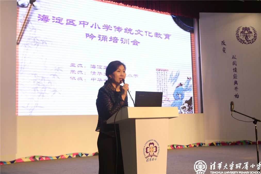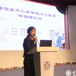 6月10日,海淀区中小学传统文化教育吟诵培训在我校联盛馆举行。参会的有海淀区教科所吴颖慧所长、闫顺林主任,中华书局经典教育推广中心祝安顺主任,著名特级教师陈琴老师和海淀区五十多所传统文化基地校近两百名教师和我校部分老师和家长。