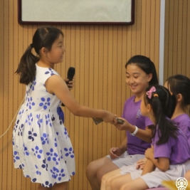 金香延用同龄人的语言和体会,给同学们讲述了《三国演义》中的历史故事,诠释了其中的英雄人物。她从三国的历史背景,讲到了三国的“三绝”,三国的三大战役,到最后的三国归晋。在短短半小时的时间内,精选了十八路诸侯讨董卓、巧施连环计、桃园结义、过五关斩六将、三顾茅庐、赤壁之战、空城计等重要故事进行串联,并分析了主要人物的性格特点,使同学们都沉浸在了三国的世界里。