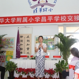 窦桂梅校长在讲话中首先以一名党员的身份,对大家在倡导“社会主义核心价值观”氛围下的通力合作,鞠躬感谢。其次,感谢了隋书记对清华附小办学的大力支持。最后,窦校长谈到,“交接”并不意味着一方责任的终止,而是一种承接,需要各方以一种新的状态展开合作,希望区教委、学校、招商嘉铭公司、家长携起手来,共同为孩子们开创更好的未来!