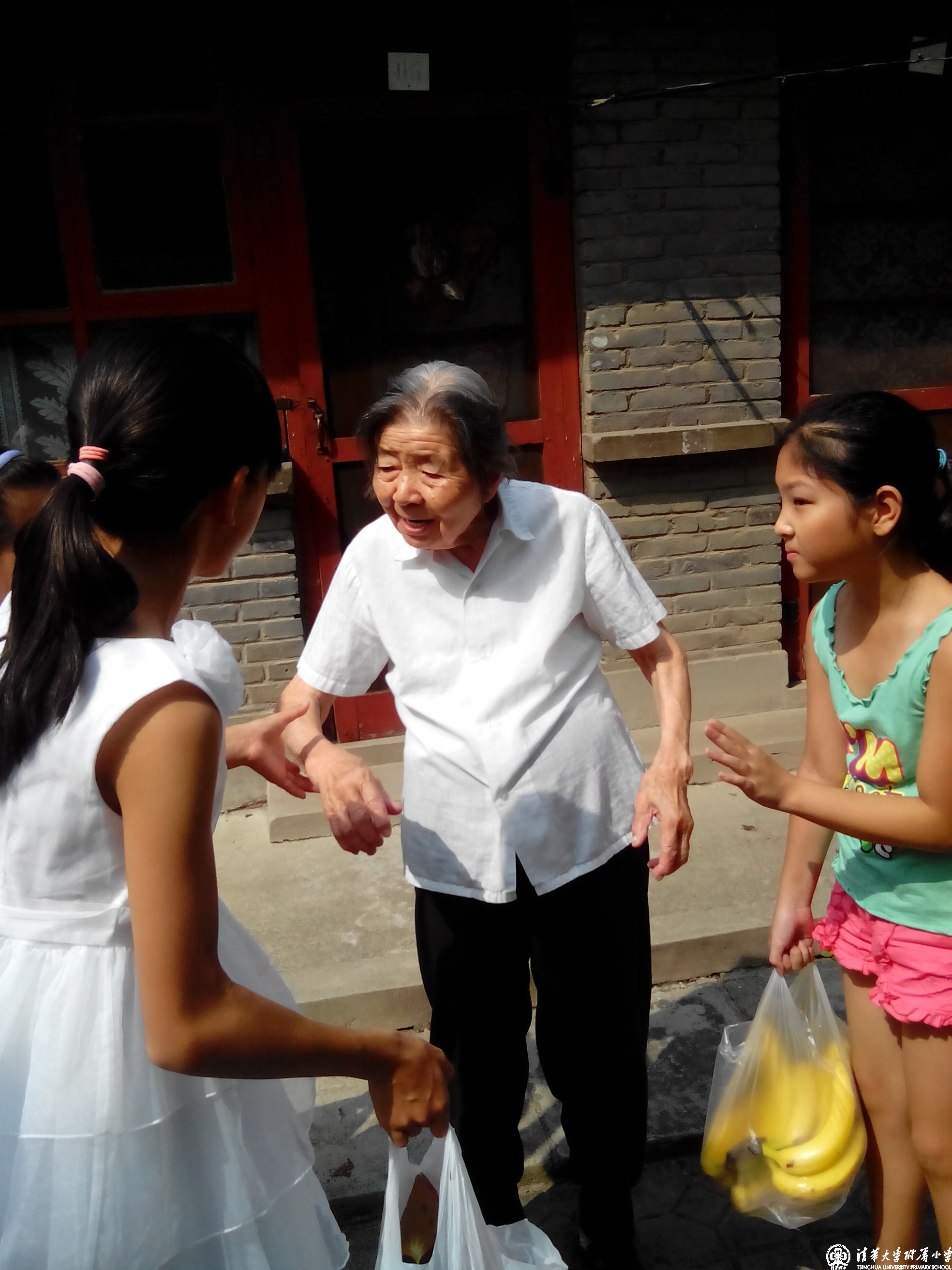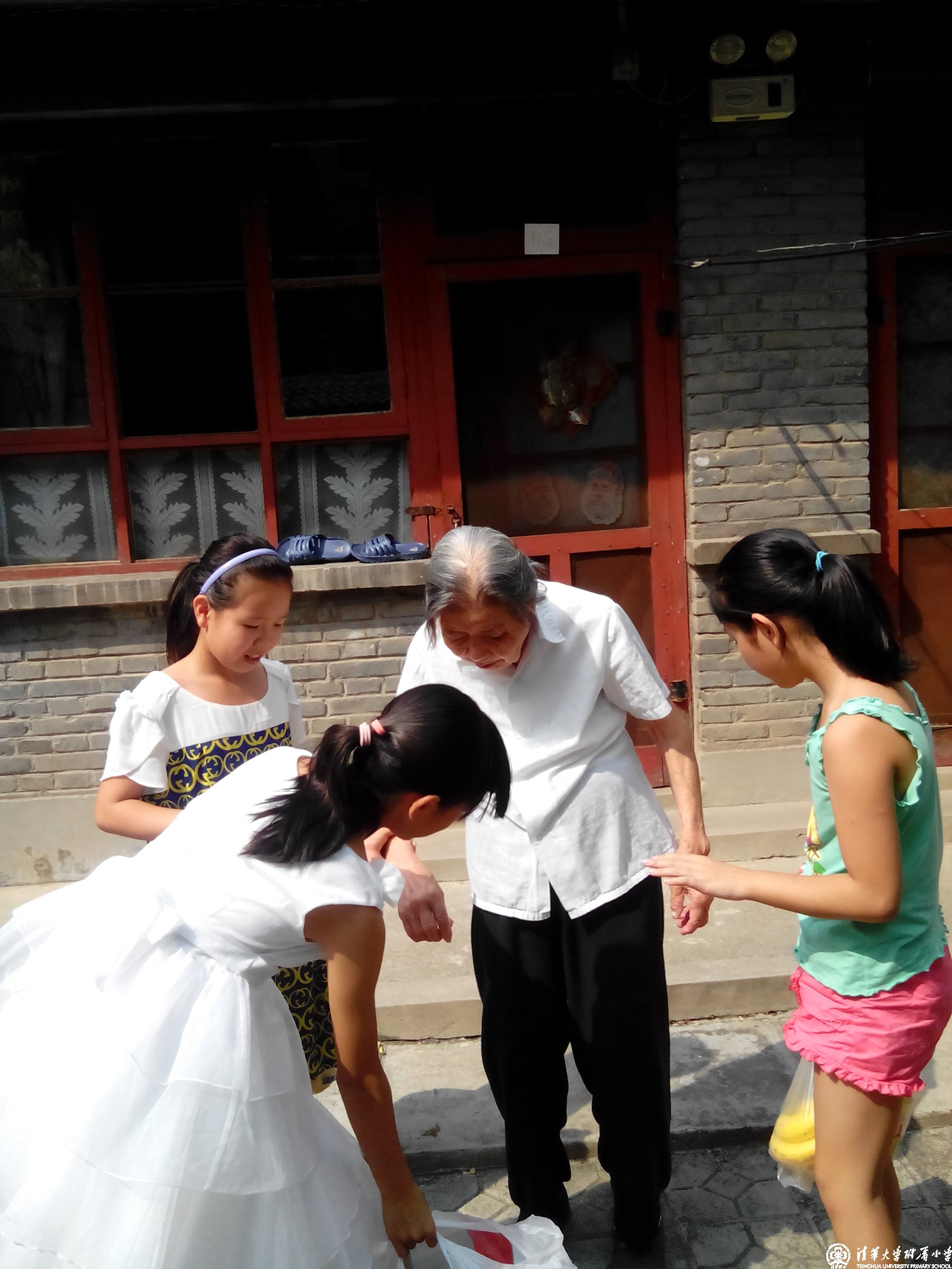 阳光灿烂送温情,附小学子意融融。为培养青少年儿童敬老、爱老、助老的传统美德,2014年8月17日下午,清华附小五(5)班6名同学,在家长的带领下,走进清华大学敬老公寓看望慰问老人,为那里的孤寡老人送去了最纯真的关怀和最温馨的祝福。