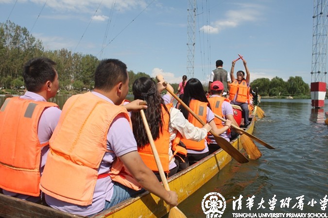 在党工团的前期策划和积极组织下,刚到拓展基地的老师们就迅速分为五支团队,投入到当天上午陆地项目中。“多人多足”和“有轨电车”考验着每支队伍的协调能力和凝聚力。“穿越雷阵”不仅是测查成员的记忆力,也同样强化着团队的规则意识和合作能力。下午的龙舟竞渡更是将本次拓展培训活动推向了高潮。每支团队在舵手的引领下,桨击浪花,奋勇争先,恰如附小在基础教育领域的拼搏之势。