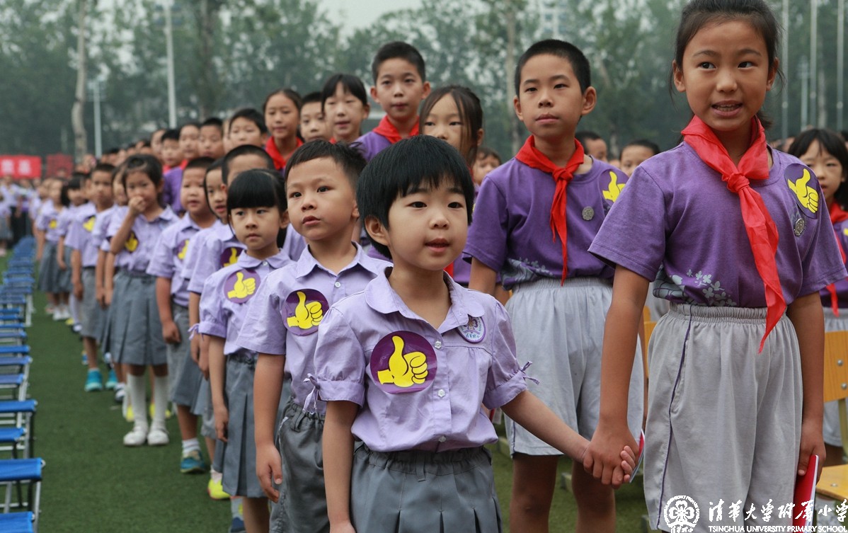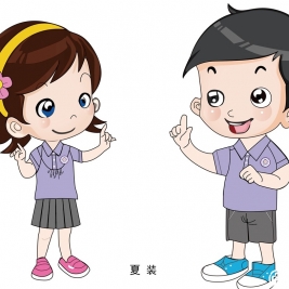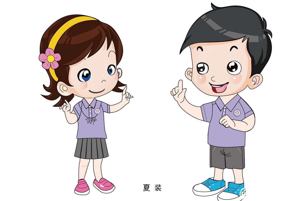 - 夏季新校服:紫色短袖衬衫(左侧一年级学生)