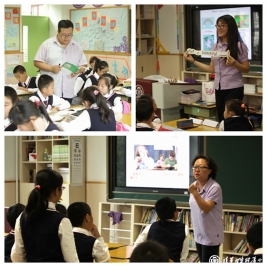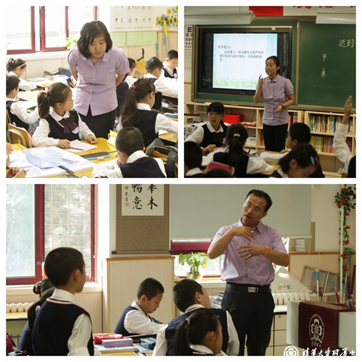 为了提升调研质量,提高常态课堂的教学实效,教研员老师分别下到课堂,共听了语文、英语、数学、科学、音乐、心理学科的24节常态课。课后,分别手把手、一对一地对老师提供帮助,对所听课进行细致的教学指导。上课老师深感教研员老师的指导站位高,理念新,方向明,不但问题说透,还能方法给够。教研员们也力赞儿童站在正中央的理念,清华附小的学生表达丰富,具有非常强的质疑能力以及创造性的思维能力,在课堂上呈现出“健康、阳光、乐学”的样态。对学校课程整合理念下的整体风貌、课程下的课堂、养成教育的三张名片、课前三分钟的微课、教师敬业博爱儒雅的样态等做了充分的肯定,并对我校的教育改革充满新的期待与厚望。此次下校调研,为百年附小的课程改革注入精神动力与思想源泉。