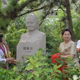 面对优雅而从容的顾校长塑像,与会者仿佛感到,已故7年的顾校长从未远离我们,今天她又以另外一种方式获得了永生。虽然她终身未嫁,但这位德高望重的老一辈教育家,却早已结出了站满附小操场的桃李。今后,当她的故事成为一段传说、我们再次仰望这尊塑像时,或许会从那一缕纯净的短发里、那一副慈祥的面庞上,体会出人生的真正意义,那就是:具有优秀品质的人死了,却会永远活着。相信,顾蔚云校长就是这样的人。 (执笔人:清华附小66届毕业生、校友会筹备组成员 张丽康)