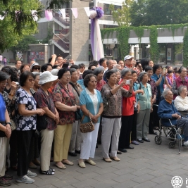 典雅清新的校园中,小学生代表为顾校长铜像带上红领巾、献上花环并敬礼致意。操场上,全体在校学生与来宾们、校友代表们一起为塑像三鞠躬,表达了崇敬与爱戴之情。学生还为来宾表演了自创的节目。这一切,将严肃而热烈的纪念活动推向了高潮。