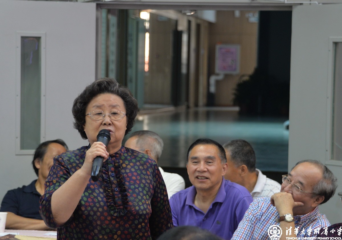 纪念会由现任清华附小党总支副书记、工会主席郭鸣剑老师主持,老教师代表沈玉凤、关培超、毕可韧,青年教师李宁及学生代表等先后发言。原任副校长沈玉凤老师回忆了老校长严谨治学的点滴往事;体育老师关培超畅谈了她亲自指导自己教学工作的往事;音乐老师毕可韧言简意赅地引用了校长的“一杯水”理念,总结了她科学的教学经验。在热烈的气氛中,大家还畅谈了引以为豪的、曾担任过附小校董的著名教授冯友兰、朱自清、叶企孙、马约翰、潘光旦,包括著名校友、诺贝尔物理学奖获得者杨振宁、两弹元勋邓稼先、奥运冠军何姿等。这么多名人均出自清华附小,绝非偶事,这与第一任校长开创的从严治学先河,有着必然的因果关系。关老师还谈到了当年顾校长亲自点将,让毕业于西南联大的施宝贞、朱鑑等老师到校任教的事例。大家感慨万千,纪念会成为了一次难得的追思会。