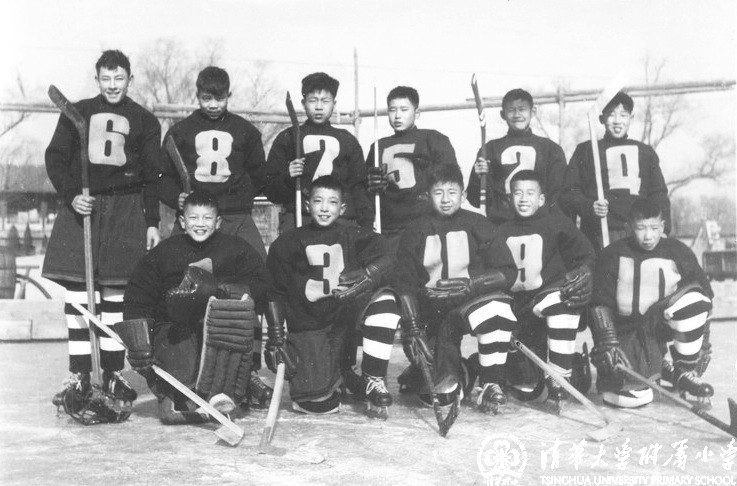 想当年,清华大学冰球队是华北地区冠军,大学队冰球教练李文俊和清华附小的关培超老师在附小成立了少年冰球队。两位教练用对专业队的要求严格训练,精心调教我们,很快,我们这群顽童就成了冰球场上一支骁勇的战斗队了。海淀区体委给我们配置了全套护具,北京市少体校的教练也常常来训练我们,我们这些清华子弟兵更是越练越有劲,越打越认真,这群冰上的孩子,成了清华园的一道风景线。每天,我们在冰上的训练,总是能引来许多观众。到1958年,我们已经是成立3年的老球队了,在北京也小有名气了。我们还引起了一些成人队对我们的关注。