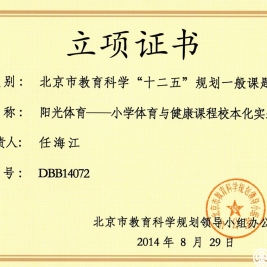 清华附小在继《小学语文主题教学实践研究》荣获首届基础教育国家级教学成果奖一等奖之后,又成为北京市教育科学“十二五”规划多项课题的主持单位。北京市教育科学“十二五”规划课题是由北京市教育科学规划领导小组办公室直接负责,覆盖北京市14个区县的省部级课题。2014年度北京市基础教育领域课题共94项,其中海淀区14项(小学仅5项),清华附小占小学独立申报的5项课题中的2项。由窦桂梅带领语文团队申报的《小学语文主题教学的研究与实践》立项为重点课题,由任海江带领体育团队申报的《阳光体育——小学体育与健康课程校本化实践研究》为一般课题。此次课题的成功入围,标志着清华附小先进的课程改革的理念又迈进了新的里程,也见证了清华附小科研团队的专业水平与实践探索能力,为百年清华附小指明了重点与方向。
