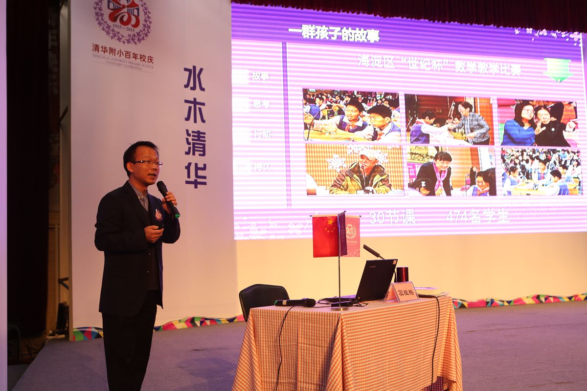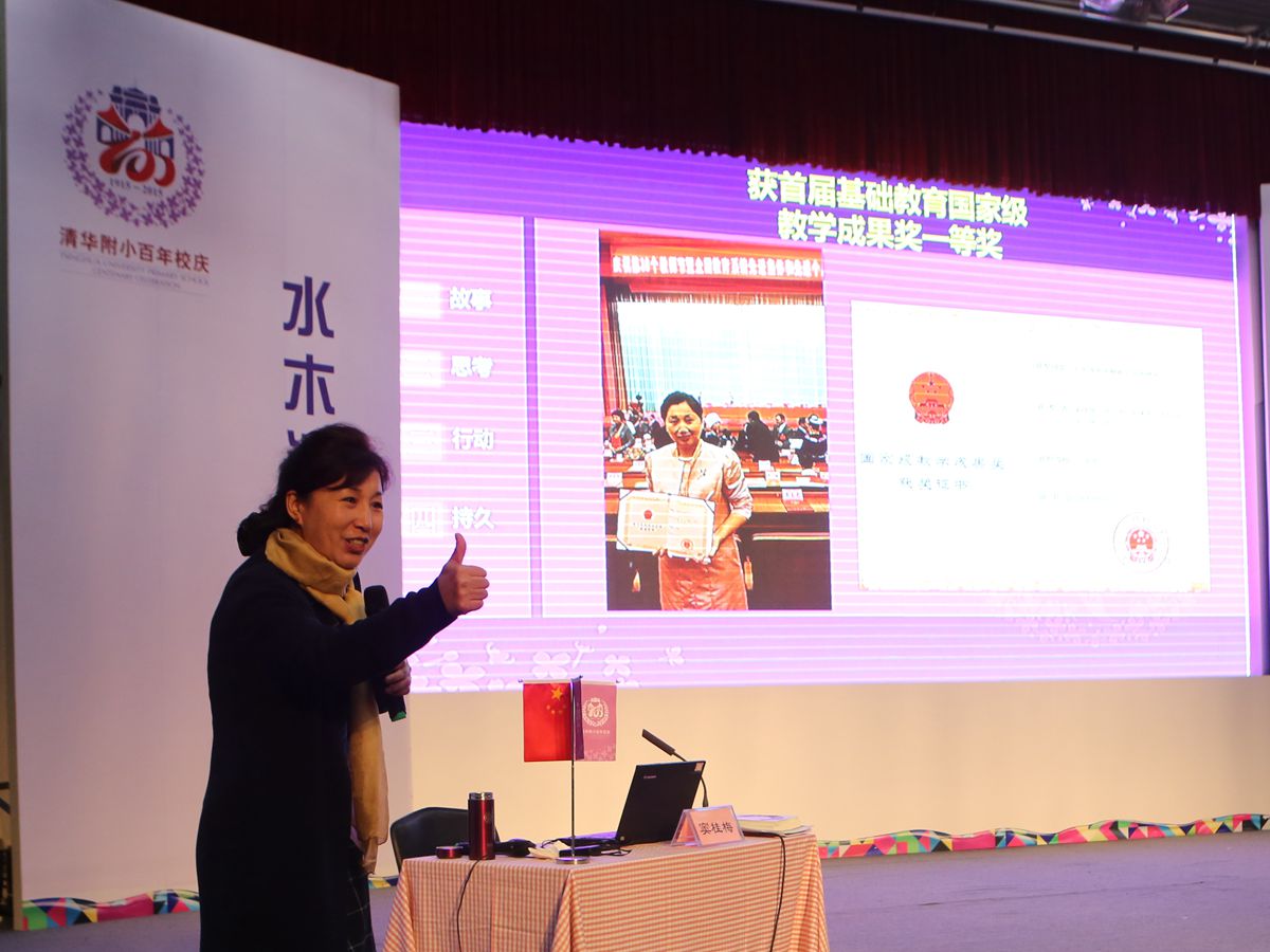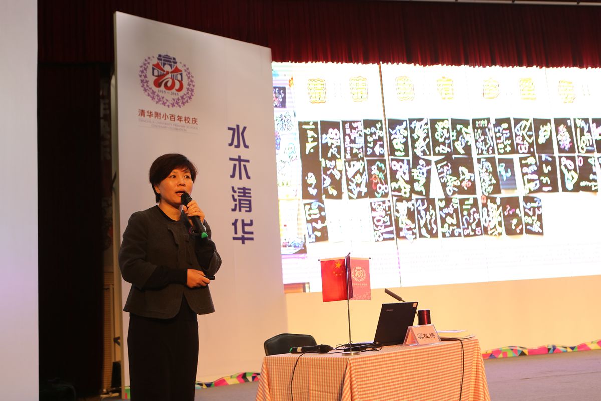 活动伊始,清华附小窦桂梅校长带领傅雪松校长、王丽星老师、姜国明老师,介绍了在课程改革背景下学校的整体改革方向和思路,展示了清华附小基于学生核心素养发展所进行的“1+X课程”整合的尝试,用主题教育夯实基础、整合课程、创新教育,让所有学生在清华文化的润泽中,在附小六年的时光里,实现“健康、阳光、乐学”的生命样态,深入践行“为聪慧与高尚的人生奠基”的办学理念。