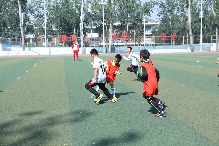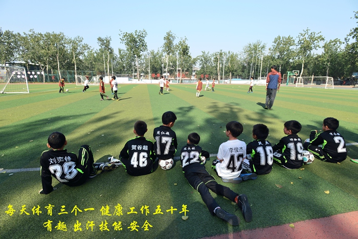足球是清华附小的品牌。百年校庆启动日当天,即将出征北京市足球联赛的同足球小将,举行了“我为百年校庆助力”的表演赛。