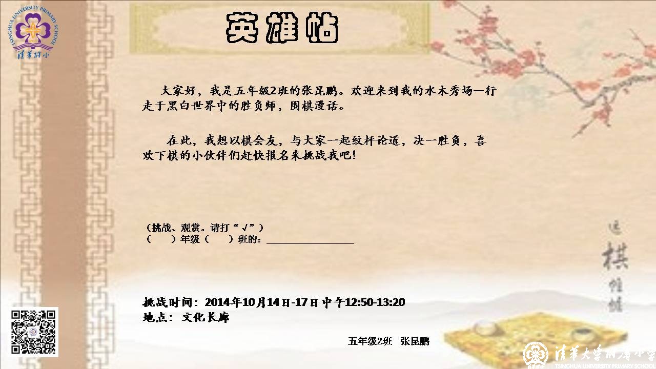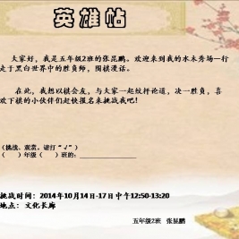 这次水木秀场给我的感触也很深,跟不同水平的同学下棋对我也是一个考验,尤其跟三(7)班的李泊宁同学那盘棋,我的收获很大,因为跟高手下棋能够锤炼自己的意志,也能从中发现自己的不足。只有不断的进行比赛,才能够成为真正的胜负师,才能够真正的领悟围棋里蕴含的至理。