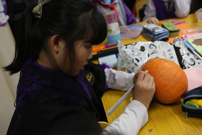 戏剧课程,表演、道具、剧务、场记,连爸爸妈妈都忙得不亦乐乎。DI课,今天是万圣节,通过推荐万圣节书目、制作装饰品、用英文表达等等几道关卡,才能得到一块糖,真不容易,但是真的特别好玩。