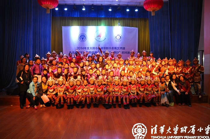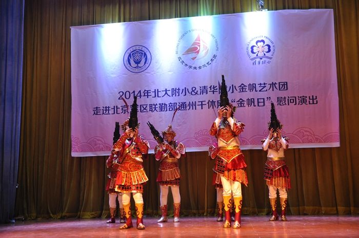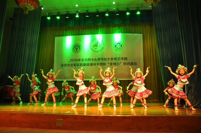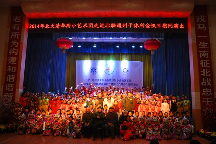 10月31日,应北京军区联勤部通州干休所邀请,清华附小金帆艺术团与北大附小金帆艺术团联合举办了2014年金帆日慰问演出活动。