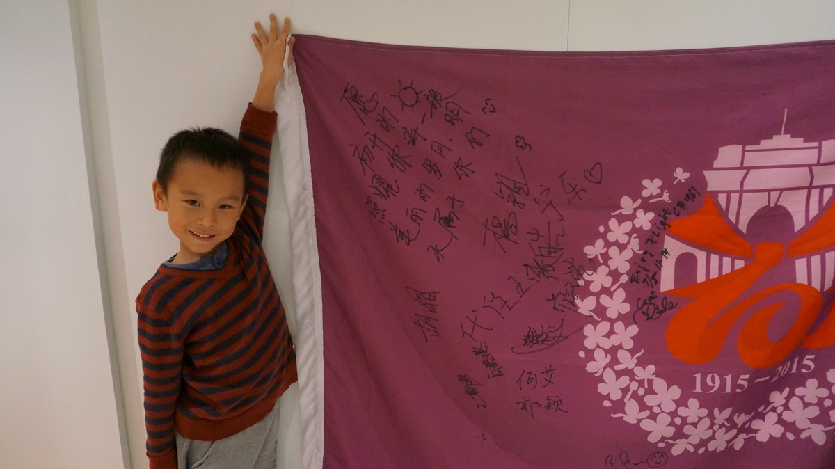 得知我们为百年附小收集祝福和签名时,老师们都欣然应允,问鐾诚,你期望哪个年级的同学帮你签名啊?鐾诚脱口而出:一年级!