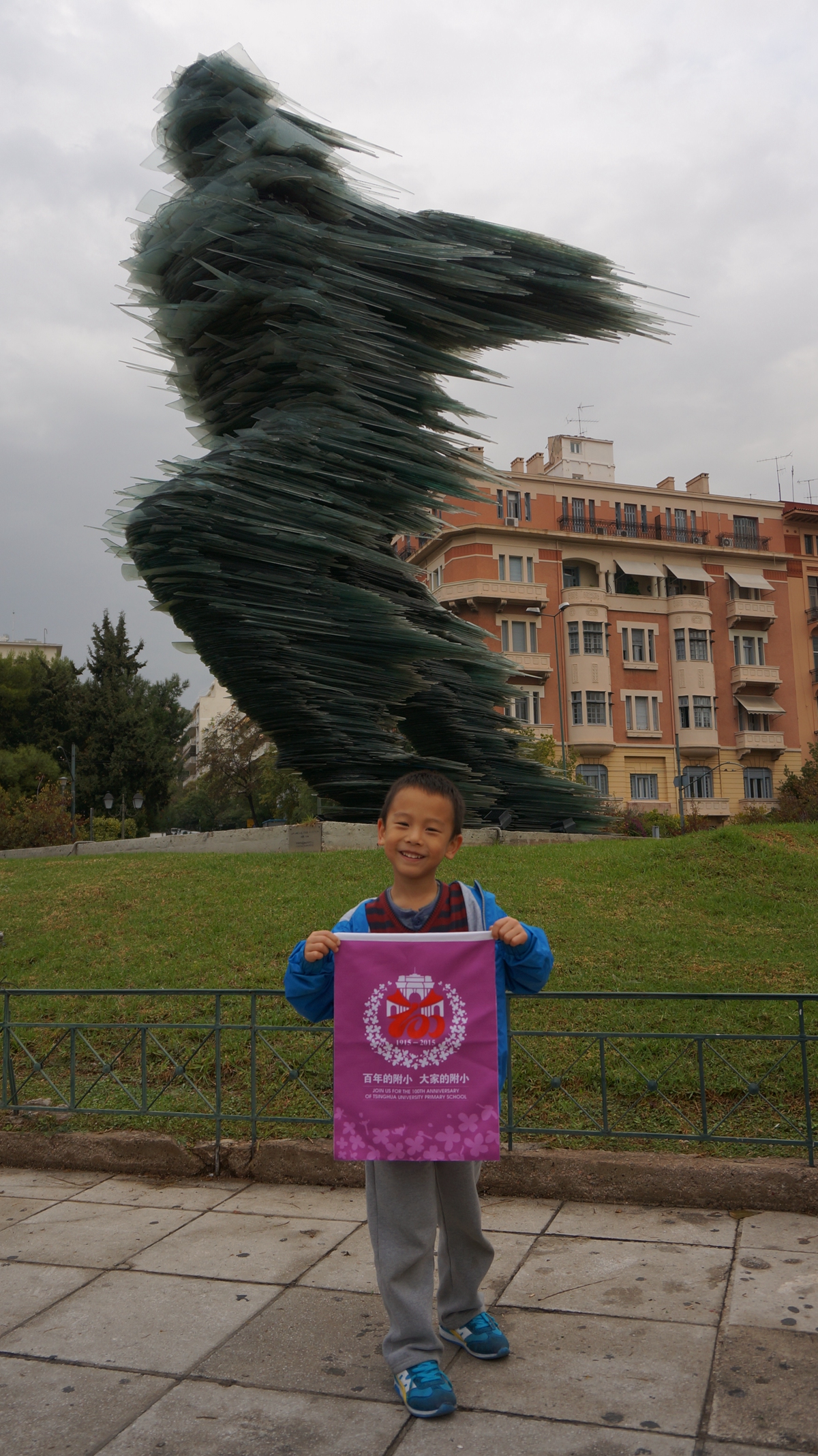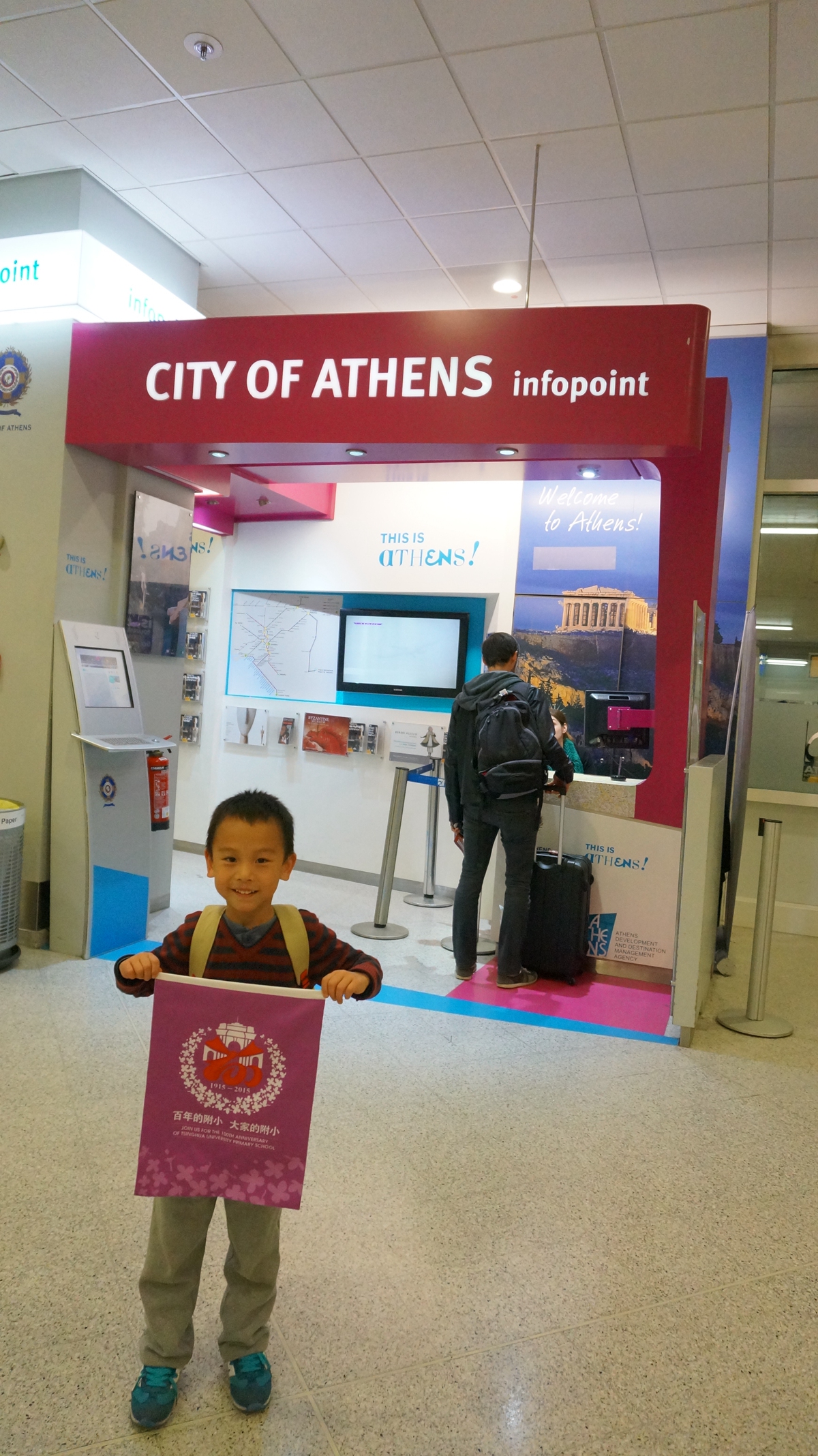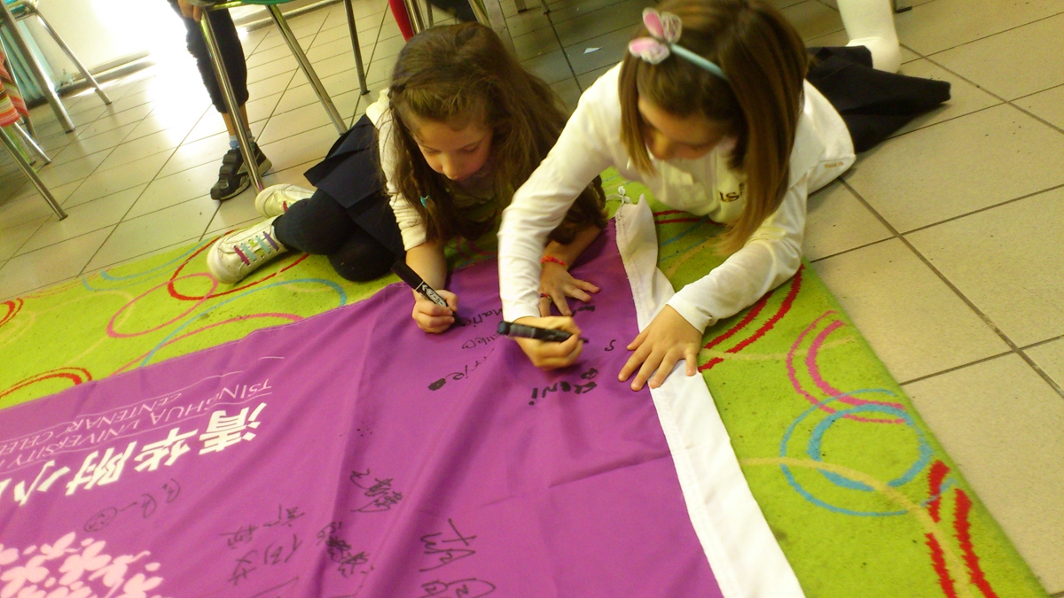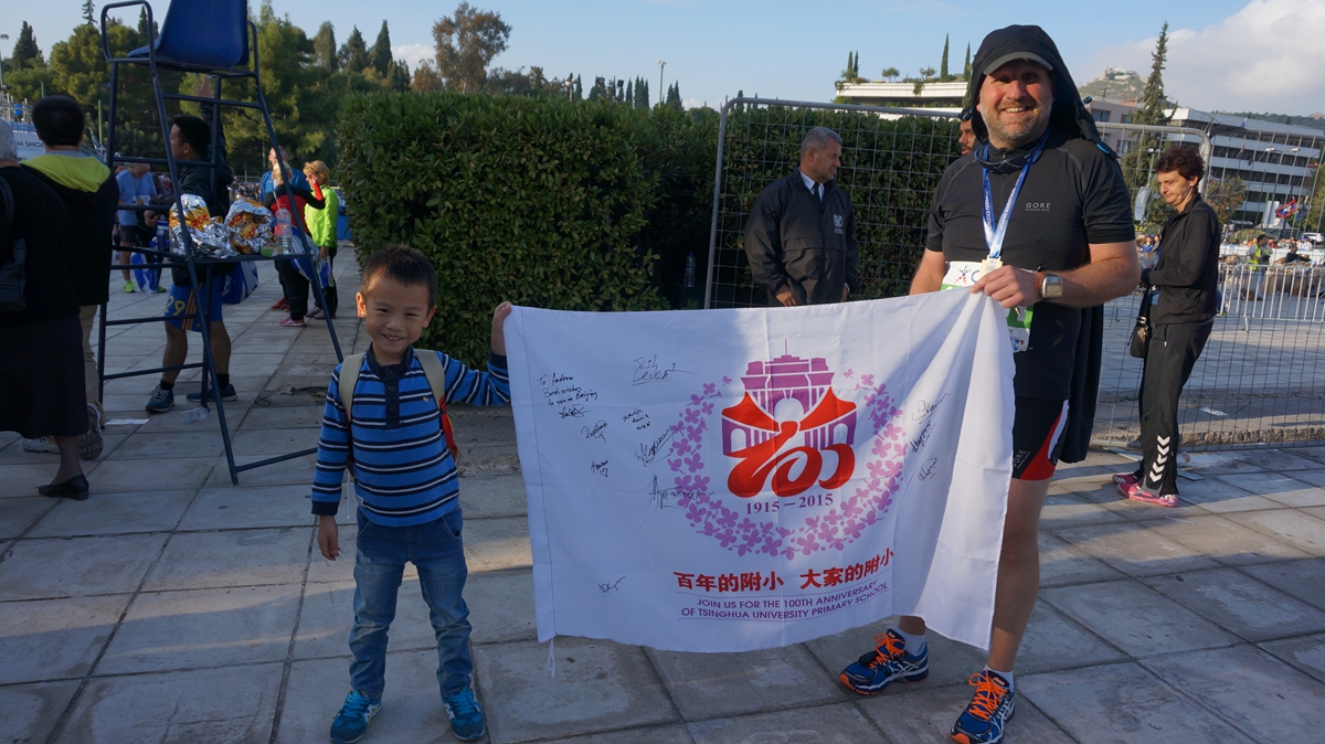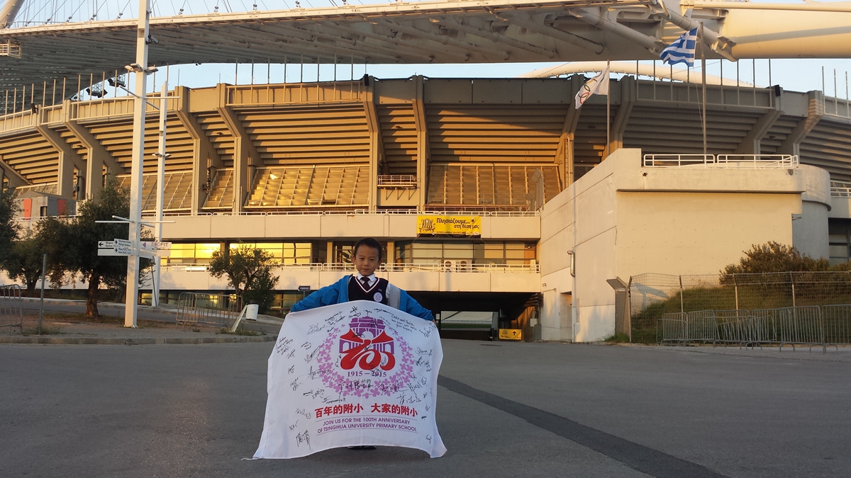 作为 2008北京奥运年出生的宝贝和清华少年的双重身份,我校一年级徐鐾诚同学,11月6-12日APEC假期中和家人一起探访了现代奥运会的起源地-希腊首都雅典,寻体育健康之源头,传百年附小之精神,为清华附小百年校庆代言。沿途中,他与飞机乘务人员、餐馆的工作人员、希腊奥组委的官员,意大利足球国家队员,参加马拉松比赛的运动员等等,进行“我是清华附小代言人”活动,为百年附小搜集祝福,,这个过程中鐾诚同学,不仅把百年校庆的旗帜带到了奥运精神的发源地,收集到了100多人的签名和祝福,同时,也锻炼了他与陌生人交流的胆量,将附小的三张名片“微笑、感谢、赞美”送给了他结识的所有大朋友和小朋友,践行了清华少年的“中国灵魂、国际视野”誓词。