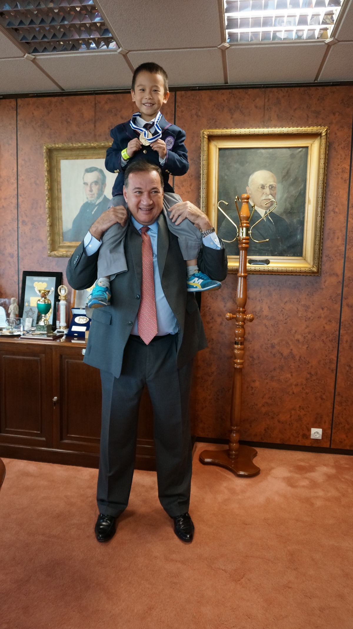 SPYROS先生欣然为附小百年校庆撰写贺词!还赠送了鐾诚珍藏的奥运资料,包括:04、08、10、12年夏季奥运图册。爸爸替鐾诚讲述了附小丰富多才的体育活动。谈到兴起时,SPYROS先生举起鐾诚,让鐾诚骑在自己脖子上一起合影;还自信的说,自己曾是2届奥运会的水球运动员,举起鐾诚小意思 :)