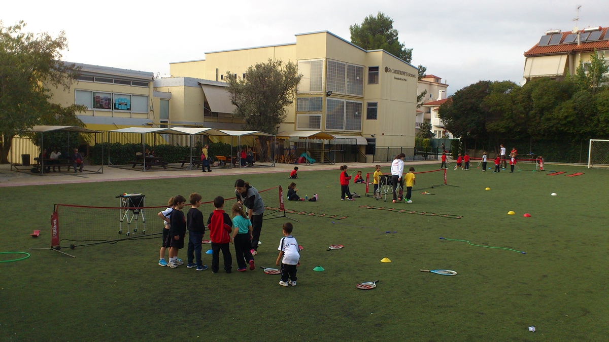 在雅典最佳私立学校圣凯瑟琳观看课外活动,鐾诚睁大眼睛看着问到,他们怎么只有网球和足球啊?我们附小比他们多好多!我报了棒球呢,还有轮滑,他们没有……