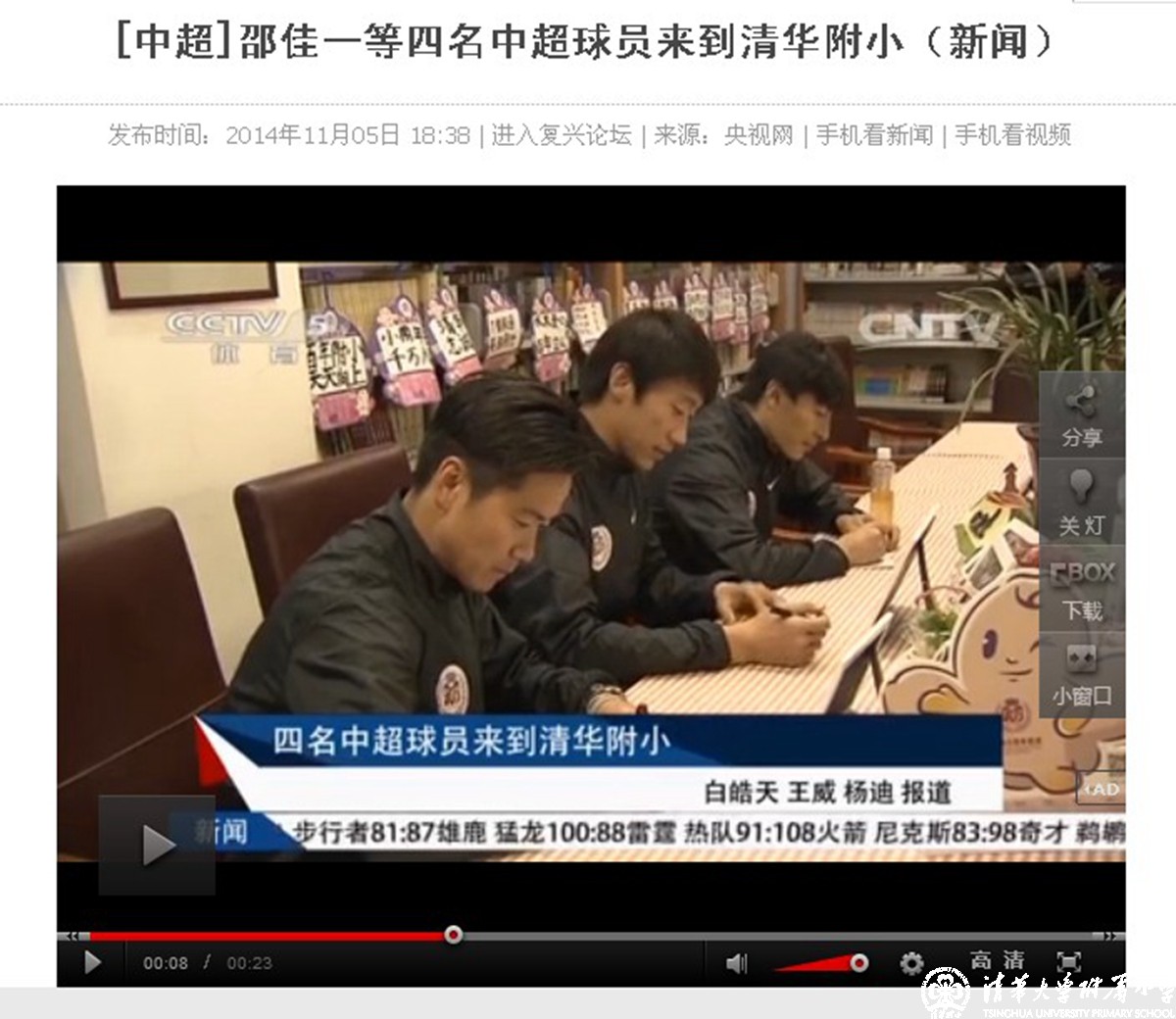 北京时间2014年11月5日,邵佳一等四名中超球员来到清华附小,他们指导孩子们训练。