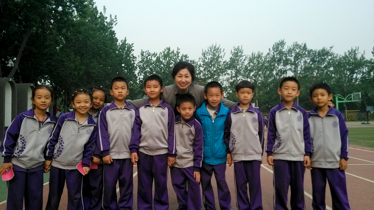 最珍贵的校长奖——窦校长和二(2)班晨练同学合影