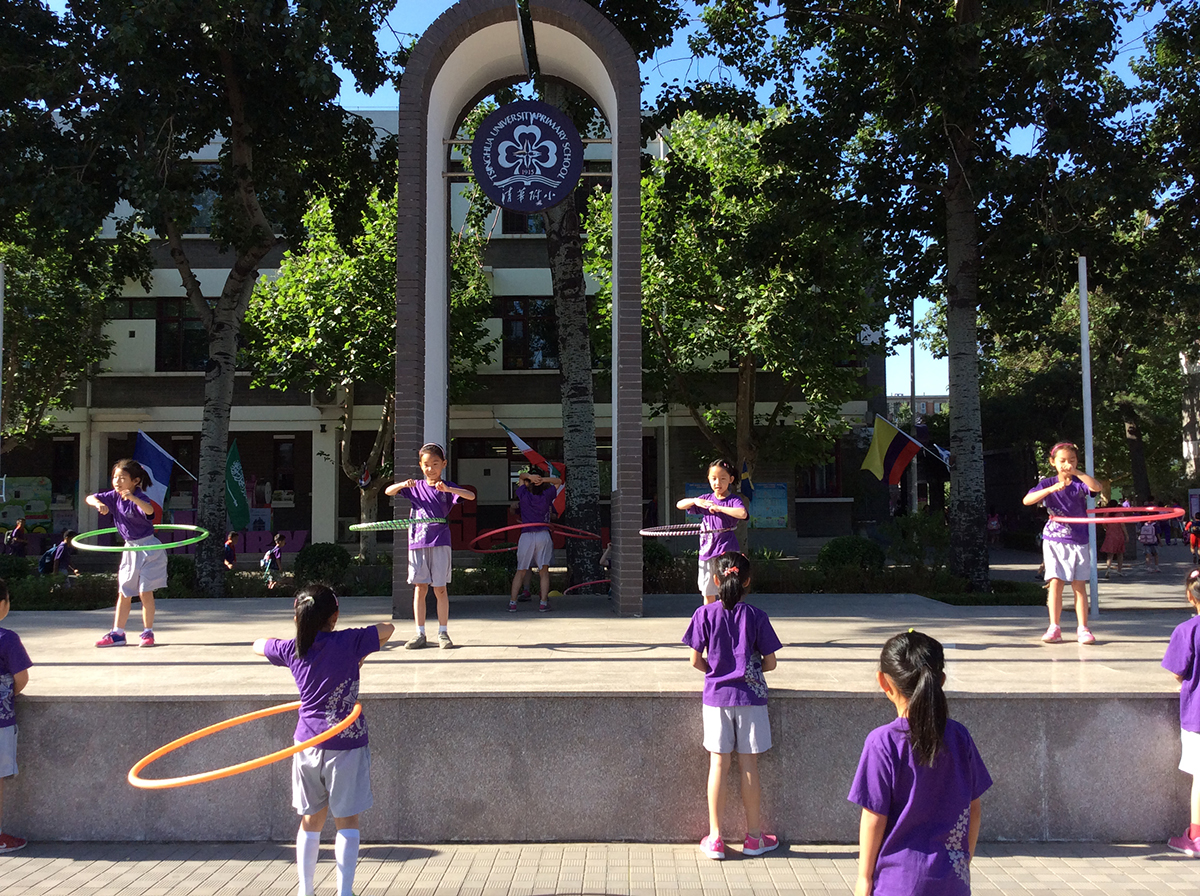 清华附小的清晨格外的美丽,不但是校园环境的优美,更加因为有晨练微课堂,校园里有太多活泼泼的生命在清晨舞动。附小把学生的健康摆在了教育的第一位,晨练微课堂,大课间,体育课的选择性与专项性的学习等一切的课程探索,都是围绕为学生打下一个健康的底子,练就学生一身好体魄而进行的。同时,附小作为百年老校,传统体育名校,其重视体育的教育理念一直延续至今,你看,这不是二(2)班的同学们在健走吗?同学们纷纷表示,要用健走的方式来锻炼身体。每天,班里的很多同学都要来参加健走活动,围绕校园走三圈。每人都走三圈,基本上,平均每天,班级加起来要走100圈,每月累计将走2015圈。就这样,二(2)班用健走的方式,用健康为百年附小代言,为百年附小喝彩。二(2)班的健走活动成为了附小晨练微课堂一道亮丽的风景。