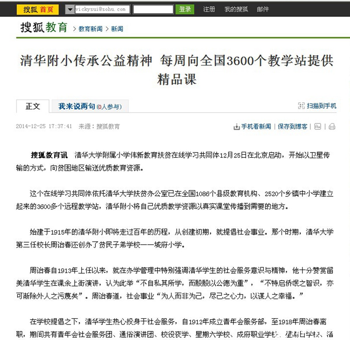 搜狐教育讯 清华大学附属小学伟新教育扶贫在线学习共同体12月25日在北京启动,开始以卫星传输的方式,向贫困地区输送优质教育资源。