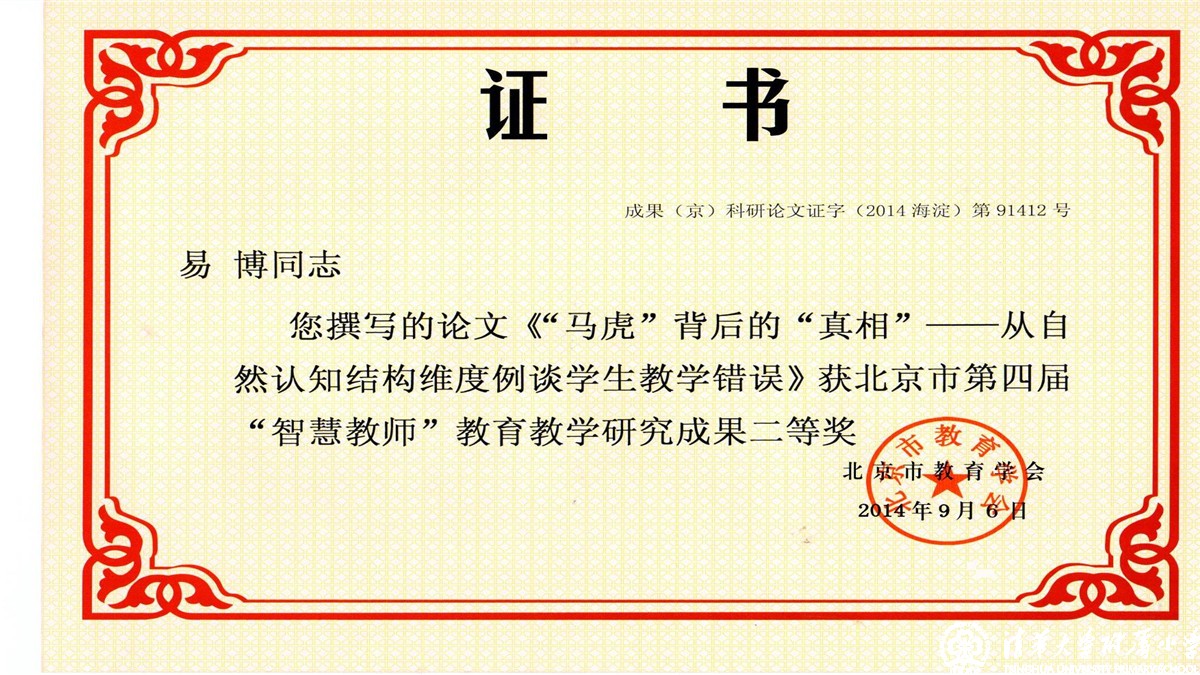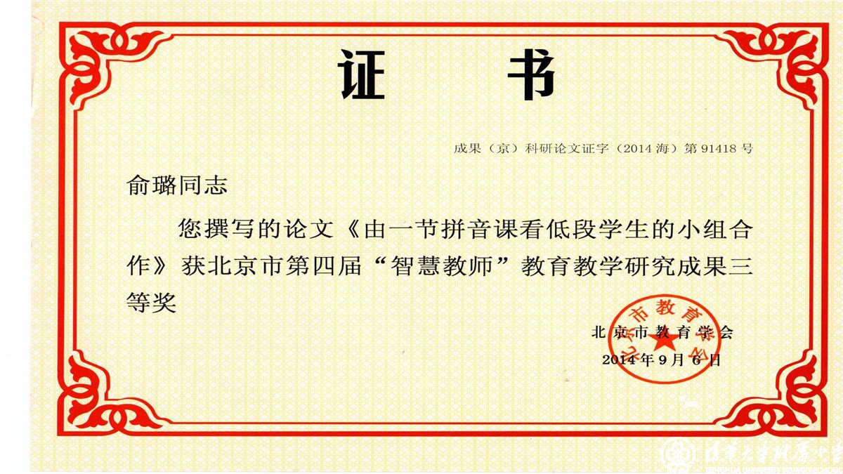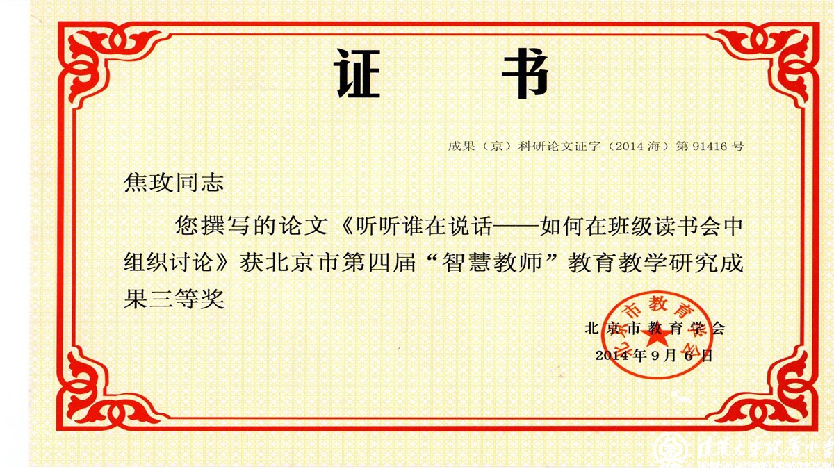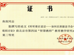 我校老师荣获北京市第四届“智慧教师”教育教学研究成果一、二、三等奖