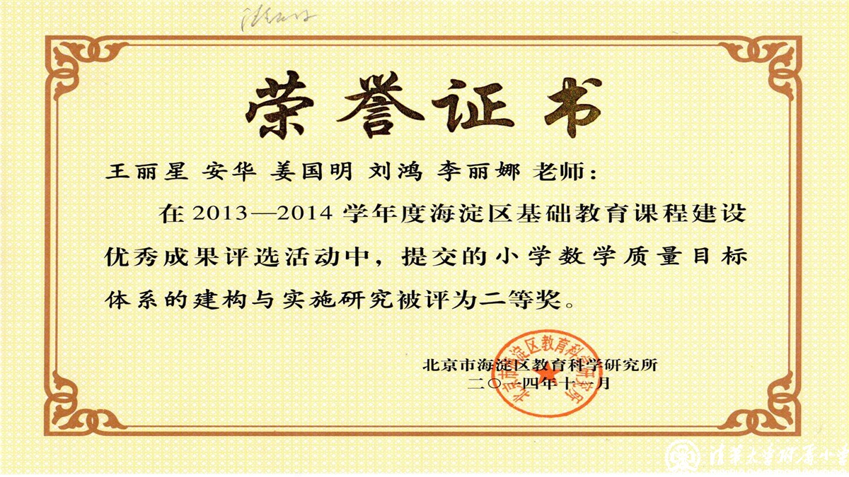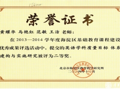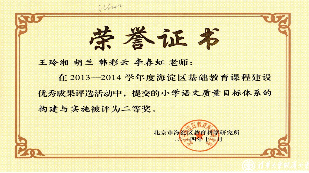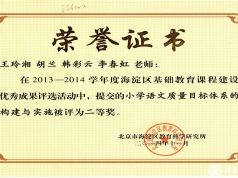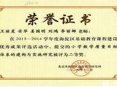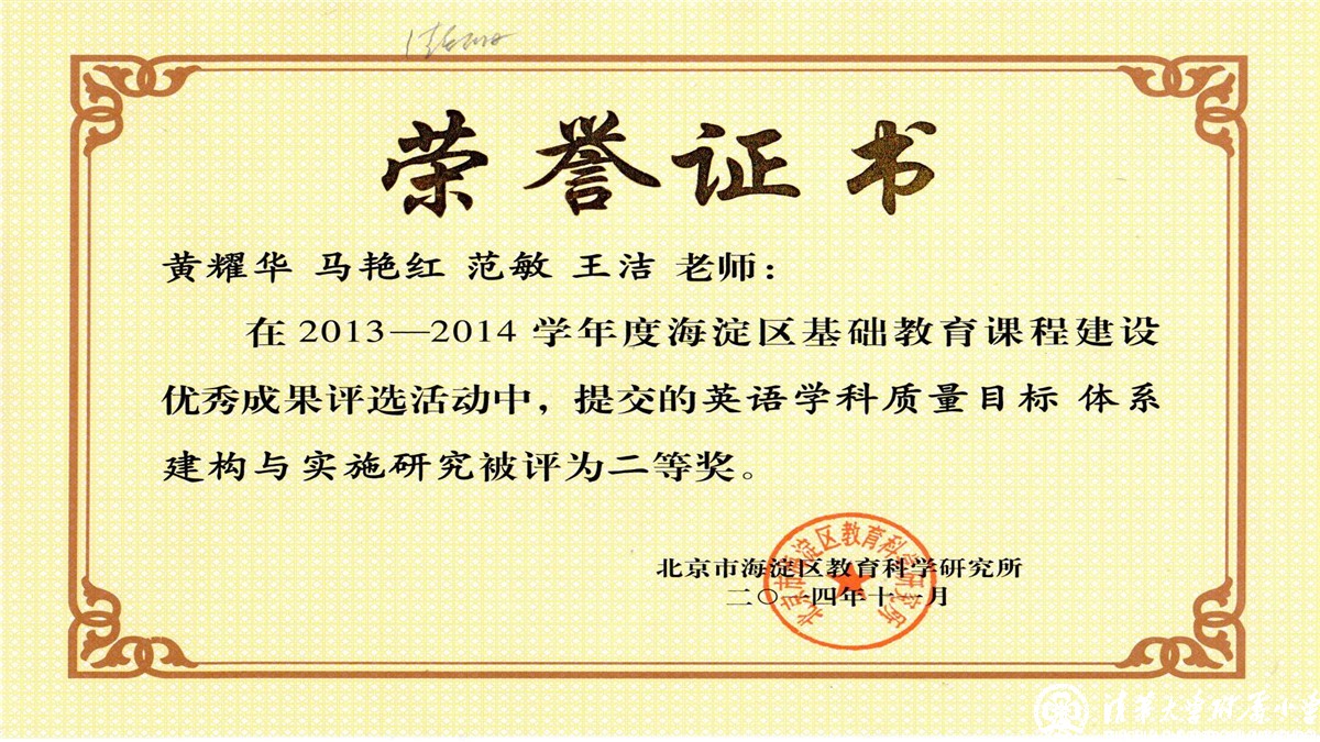 祝贺我校教师荣获2013-2014学年度海淀区基础教育课程建设优秀成果评选一、二等奖
