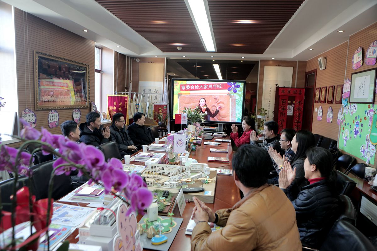 2月18日,农历除夕,附小东门口电子屏上,全校师生的新春祝福短片正滚动播放,成志大路两旁的大红灯笼早已高高挑起,附小校园洋溢着喜庆的气氛。