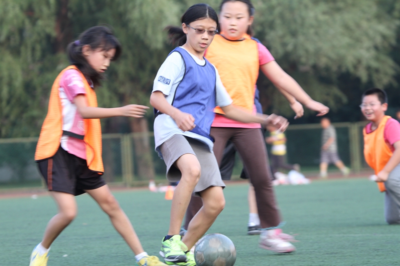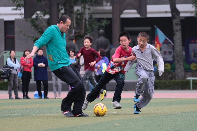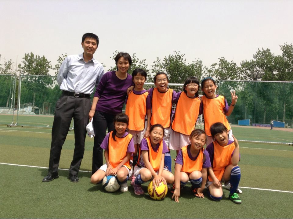 学校在体育课程改革的过程中,强调好玩、出汗,把足球作为了激发学生的兴趣点,而且足球作为世界第一大运动,包罗万象,同学们可以从中体会团队合作、积极拼搏、努力上进等一系列教育的意识。附小一个班级就有一个足球队,一个学段就有一个足球队,一个学校也有足球队,在校园里人人都喜欢踢足球,足球运动成为了学校健康教育的重要载体。由于有每个班对足球运动的支持与喜爱,也才会有附小跨国际的合作与训练,其中较为突出的班级体就是五(2)班了。