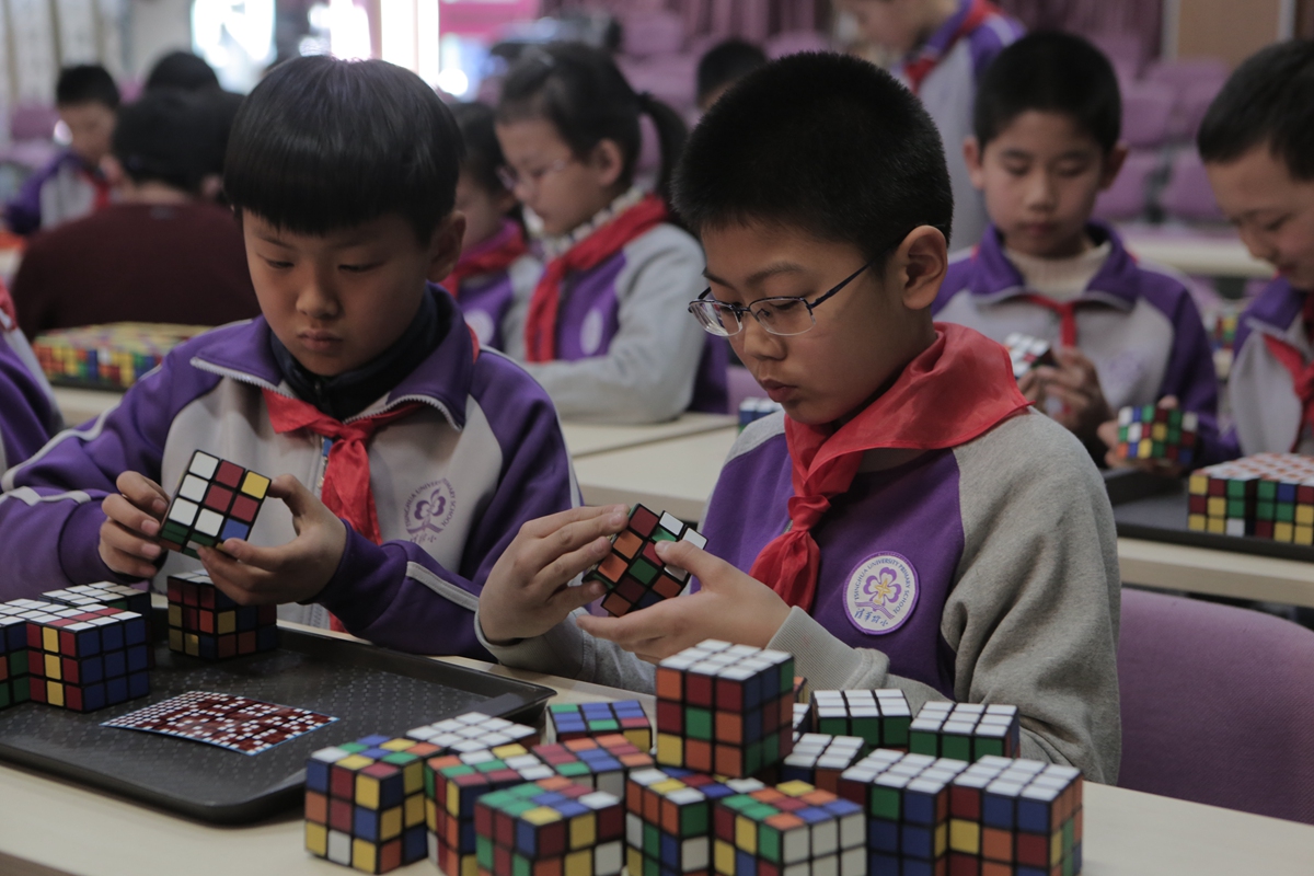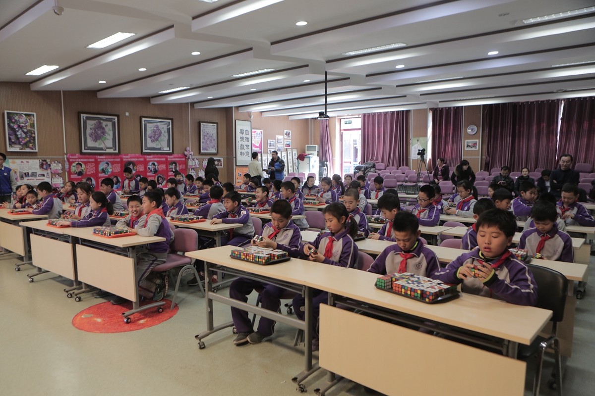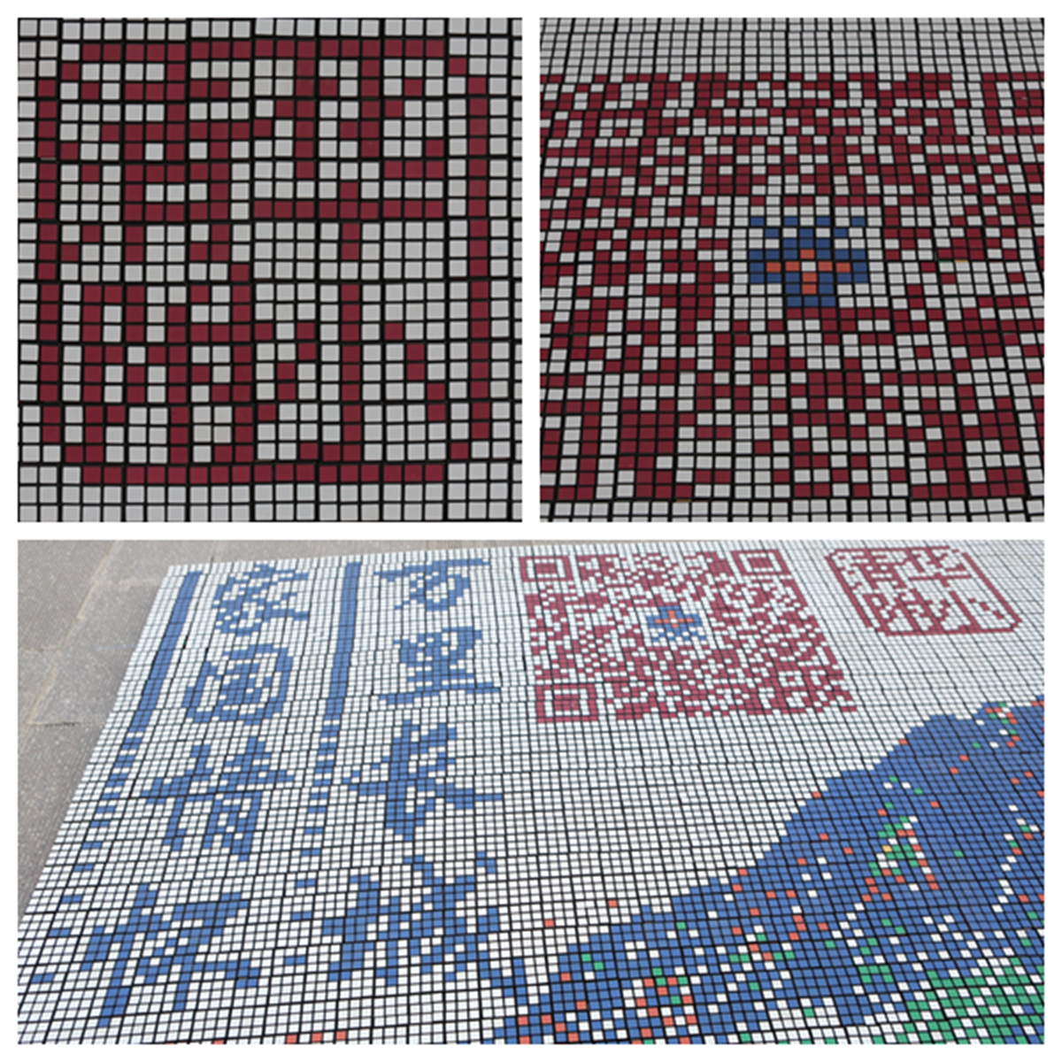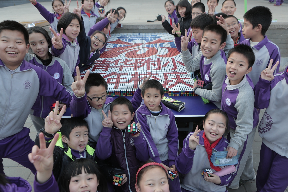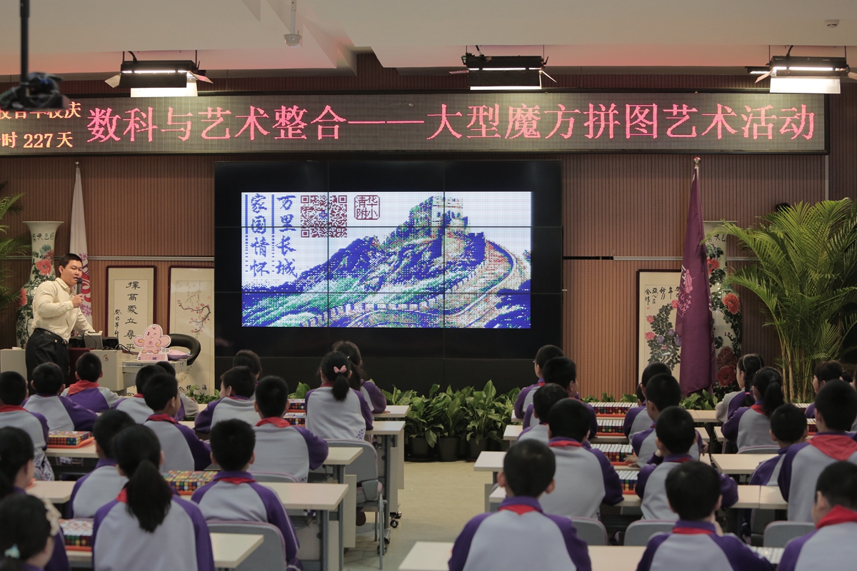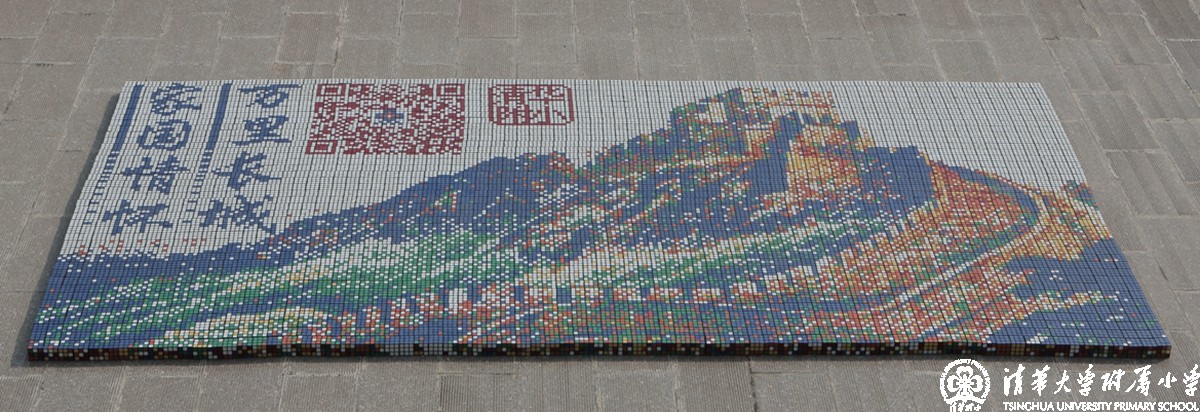 2015年3月4日,在清华附小出现了一幅3120块的巨型魔方拼图,它是60名5年级的同学们,用1.5小时完成的!巨形魔方上的长城栩栩如生,“万里长城,家国情怀”八个大字熠熠生辉。