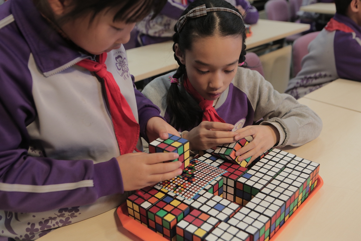 随着清华附小“1+X”课程的逐步推进,“整合”的理念已渗透到教育教学的方方面面,正是在这种理念下,有了这次数科与艺术的整合活动。孩子们在活动中投入了极大的兴趣,收获了快乐和满足,也赢得了家长和老师们的称赞。精美的魔方拼图作品引得无数人驻足流连、拍照留念。