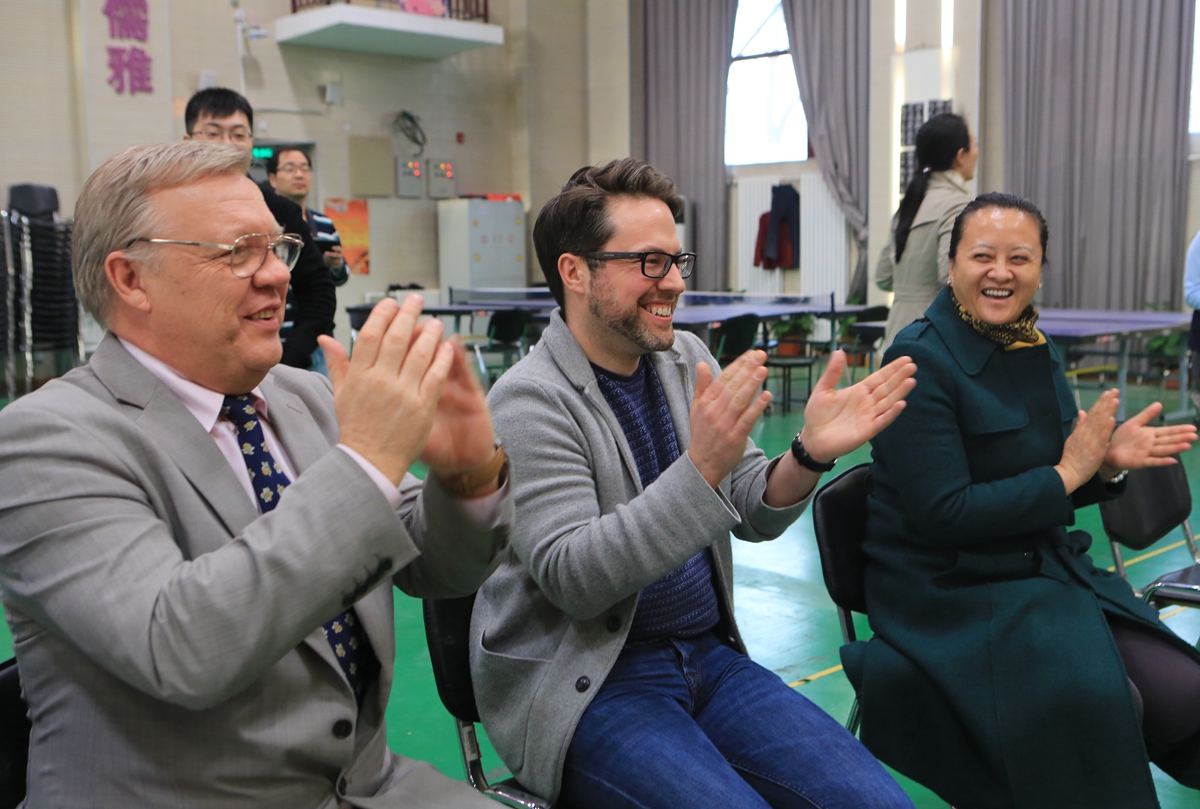 皮特一行对同学们精彩的表演给予热烈的掌声