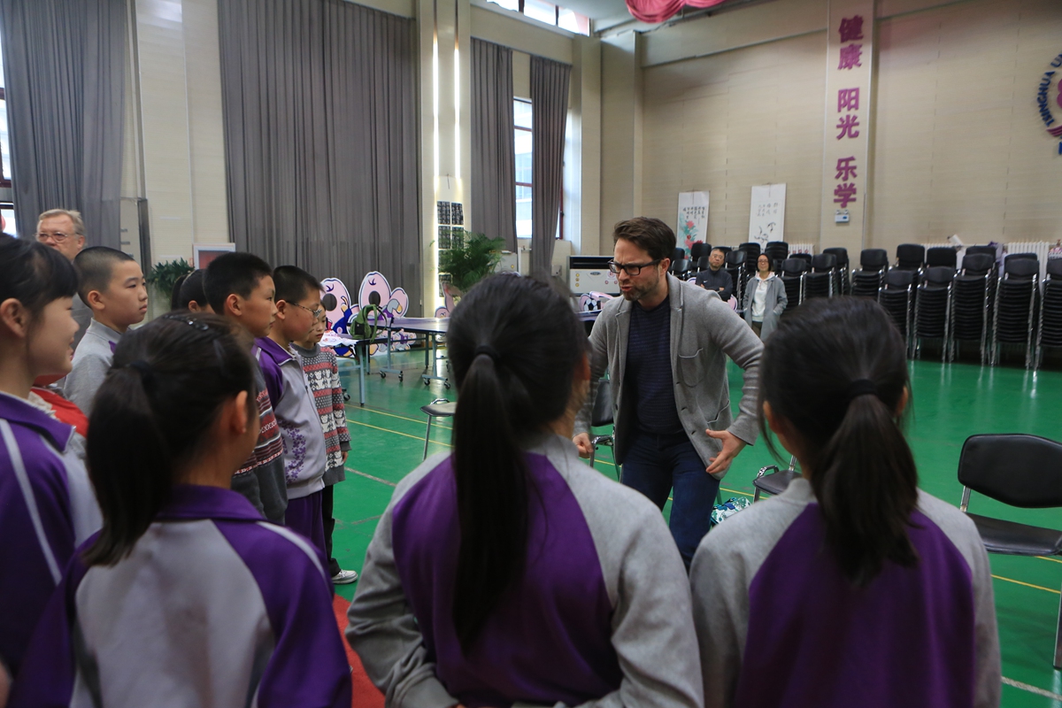 2015年3月29日下午,来自英国的著名音乐剧导演皮特.怀特来到清华附小,观看我校英语戏剧社小演员的表演,并对同学们做表演指导。