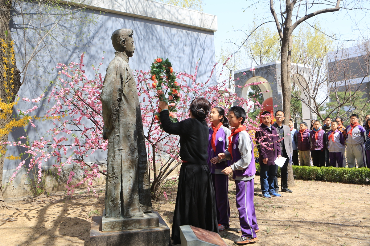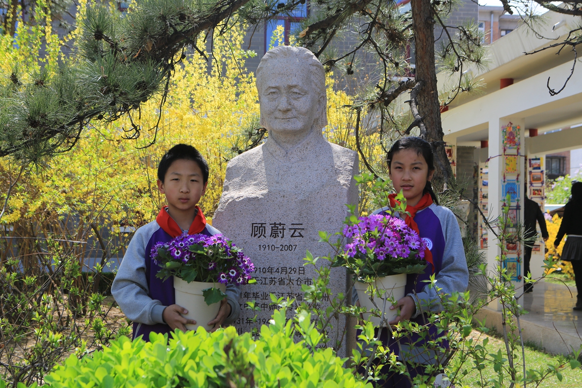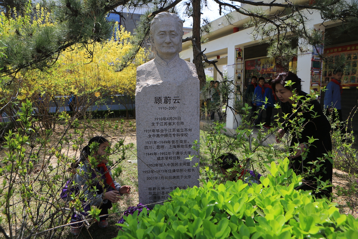 在清华大学第一个共产党员施滉同志、清华附小老校长顾蔚云先生雕塑前,老师和同学们进行默哀和三鞠躬,表达对先贤的哀思,对现在美好生活的珍惜。清华附小党总支书记窦桂梅、副书记王丽星老师,分别向同学和老师们讲述了顾蔚云校长和施滉同志的事迹。