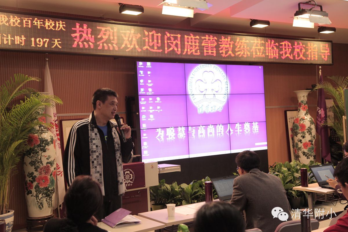 周五下午,带领北京首钢队在客场赢得CBA总冠军的闵鹿蕾教练现身清华附小,与附小篮球队的同学们进行了交流,并在全体教师会上与教师对话。他勉励同学们要像球队队员苦练基本功那样养成良好的学习习惯,在课余时间可以多多参加体育锻炼,增强身体素质。同时,闵指导还将自己的带队经验分享给老师们:管理一个班级就像带领一支球队,面对条件迥异的学生,如何差异管理,需要多多沟通、提前做好功课!