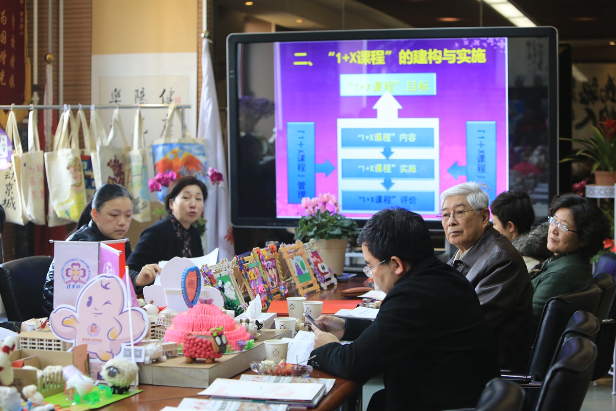 随后,在会议室,清华附小“1+X课程”研究中心负责人胡兰老师就“基于学生核心素养的课程构建汇报”主题向三位专家进行了详细介绍。