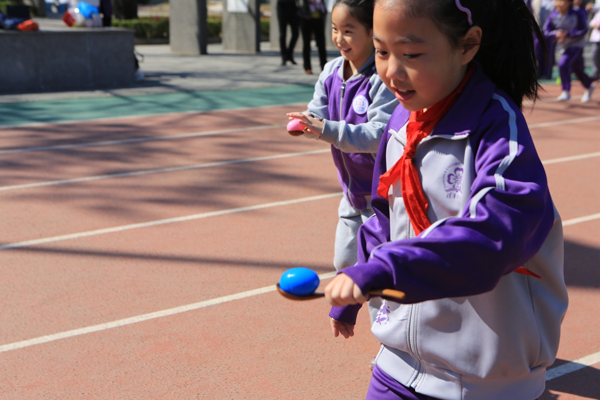 激动人心的时刻开始了,六个年级的同学们分年段进行了不同趣味活动。低段同学进行“运彩蛋”迎面接力,中年级同学进行的是“小兔子蹦蹦跳”接力,高年级同学进行了传统的“滚彩蛋”接力。