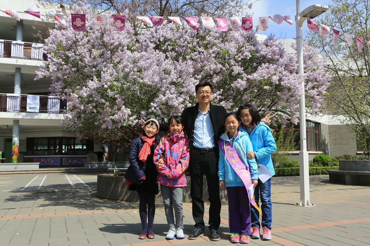 讲座结束后,阳光明媚,家长和学生手拉手,在丁香树下,在华宇池旁畅游,校园里其乐融融。两位小讲解员带着朋朋哥哥和家长一起,畅游了像博物馆一样的百年清华附小校园。亲子共游百年附小校园,开展了为百年清华附小送祝福的活动,用他们真挚的话语为百年清华附小校庆助力加油!