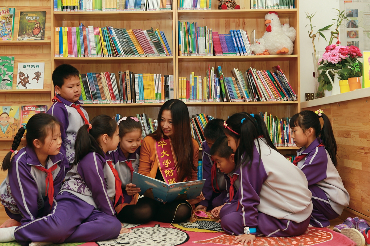 我们经常说,要让孩子多读书,读好书。清华附小的做法是:你读或不读,书在那儿。给孩子们提供一个图书的环境,一个读书的氛围,一个书香浸润的天地。敞开大门,让孩子们觅着书香而来,这是最好的引导!
