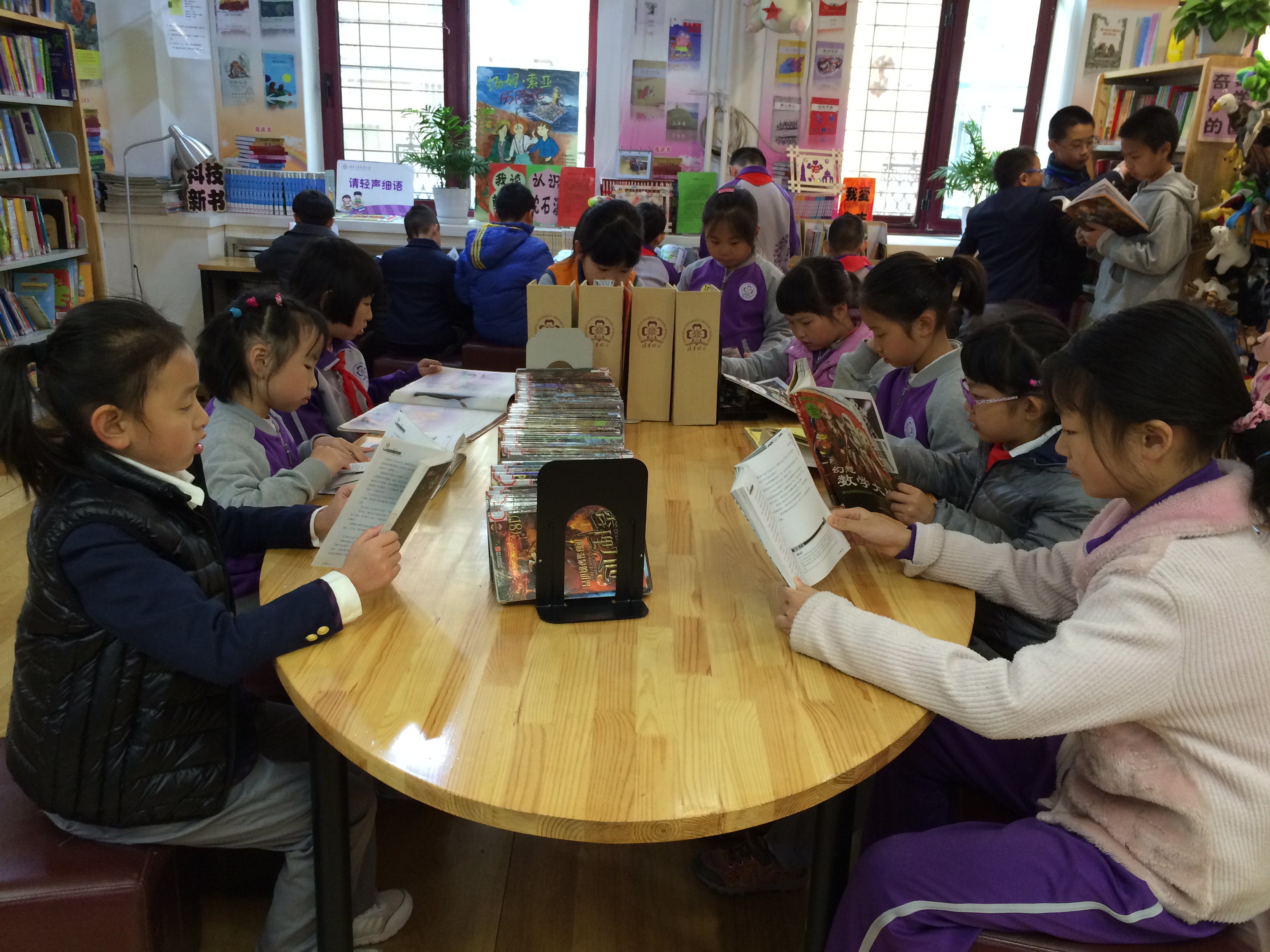 而最让我感到意外的是,孩子们读书的热情之高是我没想到的。我原以为在图书馆值班就是走个形式,哪个孩子会一大早跑到图书馆看书呢?没想到,7点15分左右,孩子们三三两两地开始进来,到7点半左右,座位几乎坐满了,有的孩子就倚在书架旁全神贯注地阅读。图书馆里人虽多,却非常安静,除了孩子们翻书的沙沙声,偶尔听到值班老师的轻声提醒:“请同学们读书的时候身体坐直、头抬高”,就像在家里时爸爸妈妈常做的那样。我还注意到一个小细节:7点50分晨读时间准时结束了,图书馆的值班老师大声宣布,请拿到今天“最会读书奖”卡片的10个同学到门口领取小礼物。原来,细心的老师已经把读书专心、坐姿端正的孩子看在眼里记在心上,并把小卡片送给了孩子。通过这种方法,引导孩子们正确地读书。多好的方法啊!