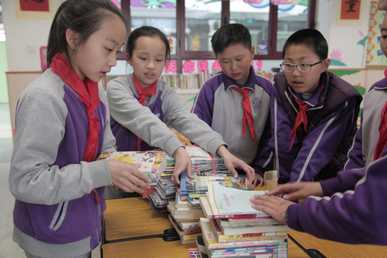 4月8日早上7点,清华附小五(6)班的小丁香们来到教室,收拾、整理百本书籍,打包装箱。张楚屏、康雲茜、李佳峻、刘盛原四位同学,代表全班,把百本书籍送给太阳村的孩子们。