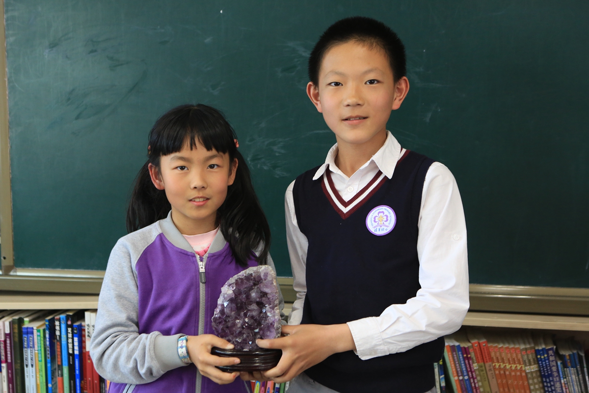 最后就是充满惊喜的颁奖环节。此次活动中积分最高的三个班级三(2)、三(4)、三(7)班得到了精美、高大上的岩石大奖!细心地岩石社团的哥哥姐姐们还为每个班级准备了各式岩石或是和书籍作为奖品,希望他们在活动后能够继续对岩石进行研究!