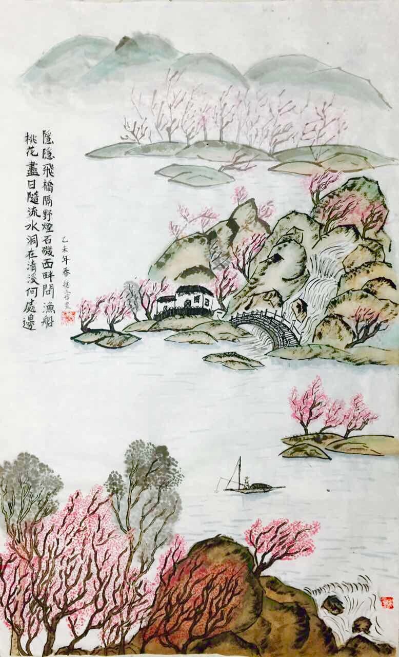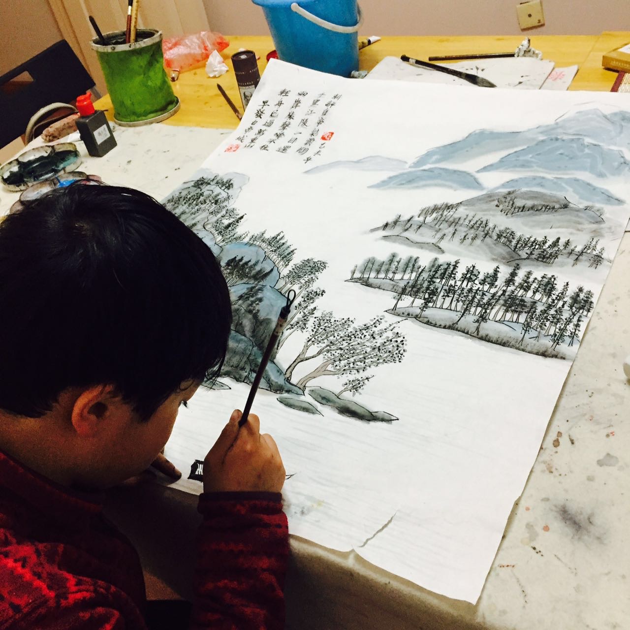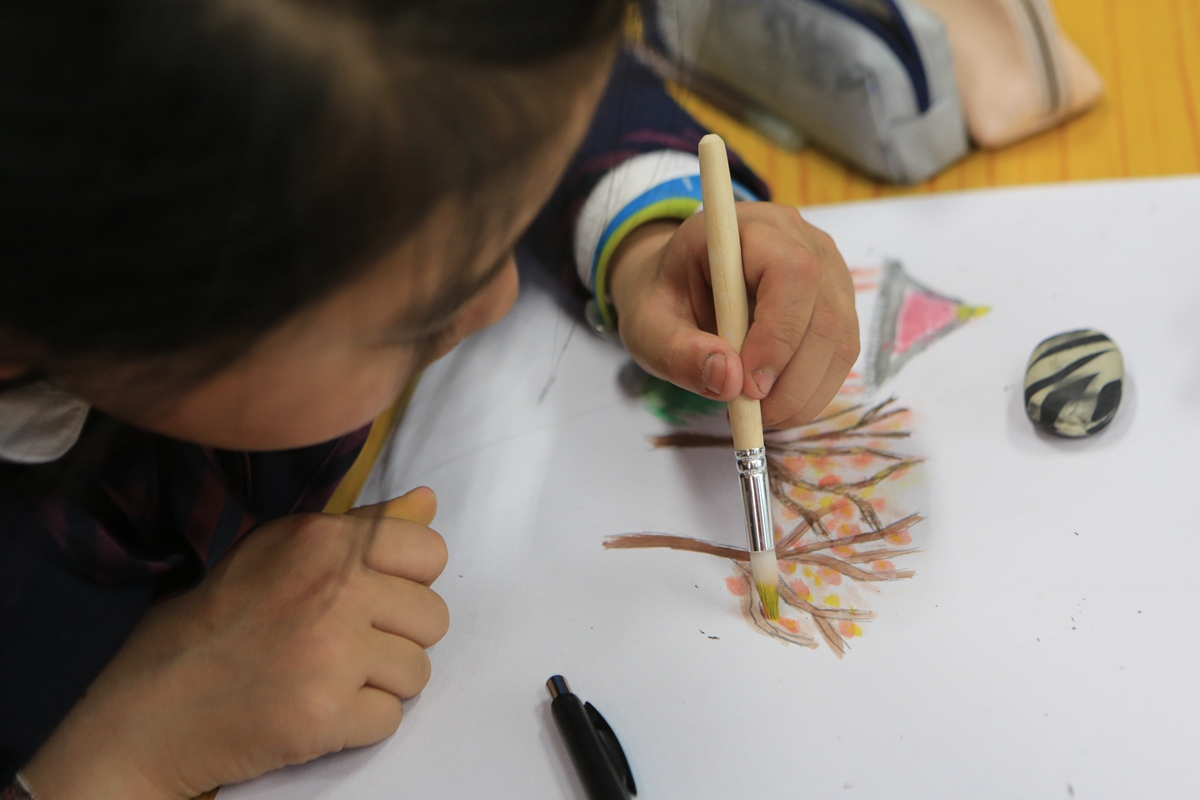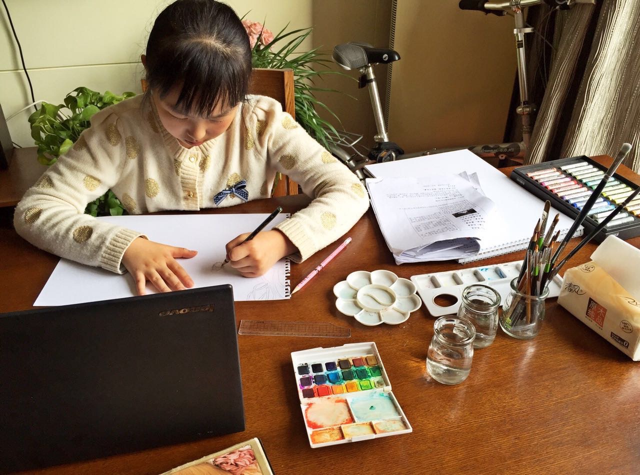 在老师与同学们互相分享自创的诗词之后,每位同学感悟诗意,发挥艺术创作灵感,为自己喜欢的诗词配上意蕴别致的美术图画。