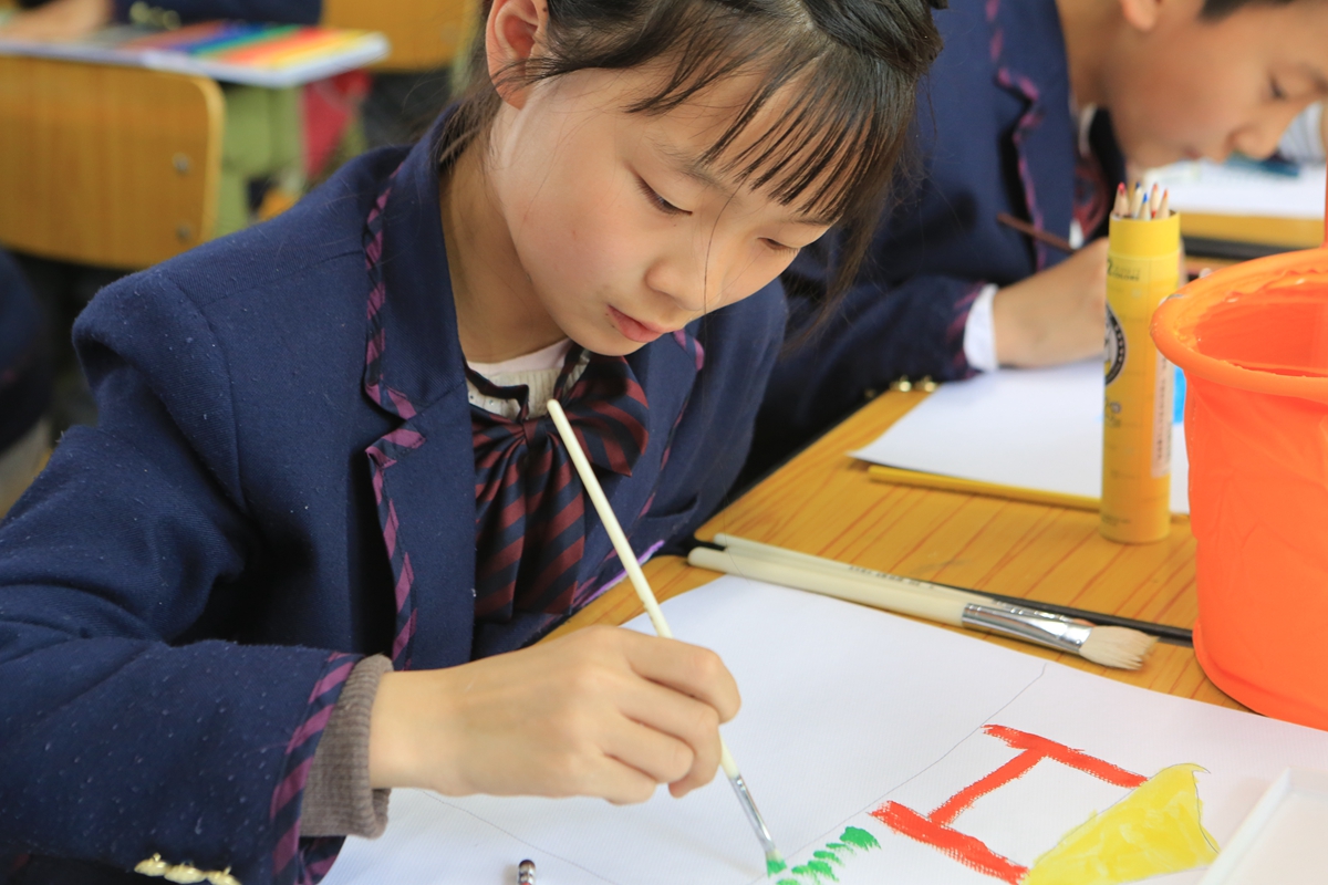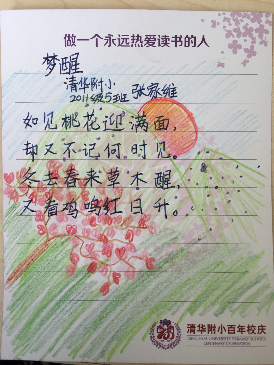 今年是附小的百年校庆,四(5)班同学将用百幅规格一致的《诗配画》,为百年献礼!