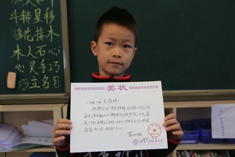 暖暖的春日里,清华附小的孩子们也在为了他们定下的一个好习惯目标坚持着。他们收获的,不仅是对实现目标的渴望,坚持的能力,还有一个更好的自己。