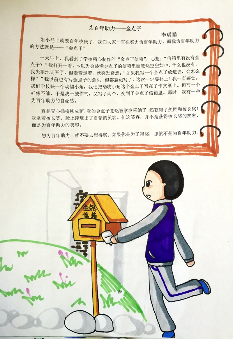 即将迎来附小的百年校庆日,全体师生和家长们共同编辑创作了《脚印》这本作文集,作为庆祝母校百年校庆的成长礼物。这本作文集中共收录了全班37个孩子的143篇作品。