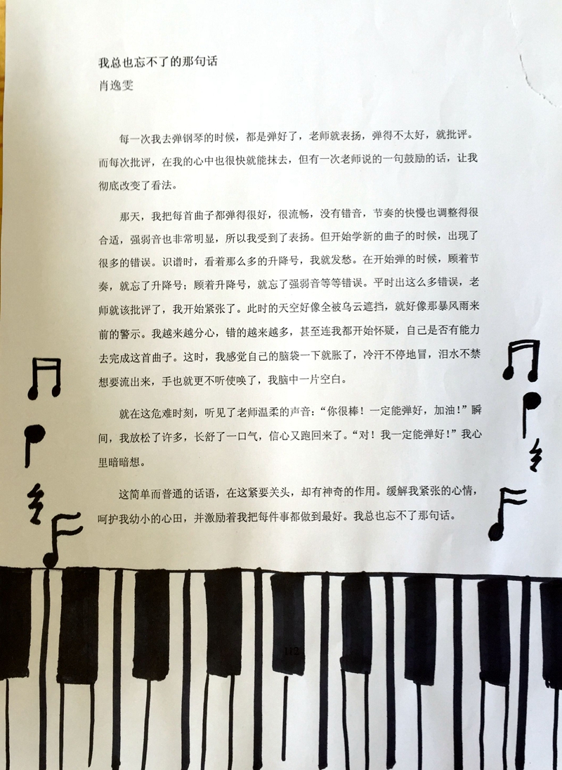 我认为写作就是让别人了解自己。因为在写作时会写出自己的想法,所以看一个人的文章比交谈能够了解他更多。——王一芮