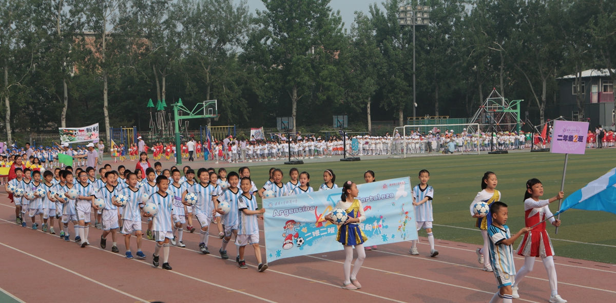 基于学生“身心健康、成志于学、天下情怀、审美雅趣、学会改变”的五大核心素养,清华附小在“1+X课程”改革中,秉承“无体育不清华”的传统,将学生的健康放在首位,将体育作为核心课程,提出“每天体育‘三个一’,健康工作五十年”的口号。同时,将校园足球作为品牌,充分发挥校园足球的育人功能,人人会踢足球,班班有球队,男女齐上阵,全员参与,被教育部评为全国校园足球先锋学校。