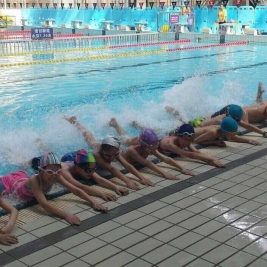 同学们准时来到陈明游泳馆外,体育老师先带着大家做准备动作。随后,同学们被3名专业教练带入场馆内,分初级、中级、高级三个小组开始上课。上课期间游泳馆是不对外开放的,专业的教练,安静的环境,适宜的水温,同学们学得充实又开心。初级班同学在教练的指导下学习基本动作,中级班练习水下基本功,高级班学习各种泳姿……