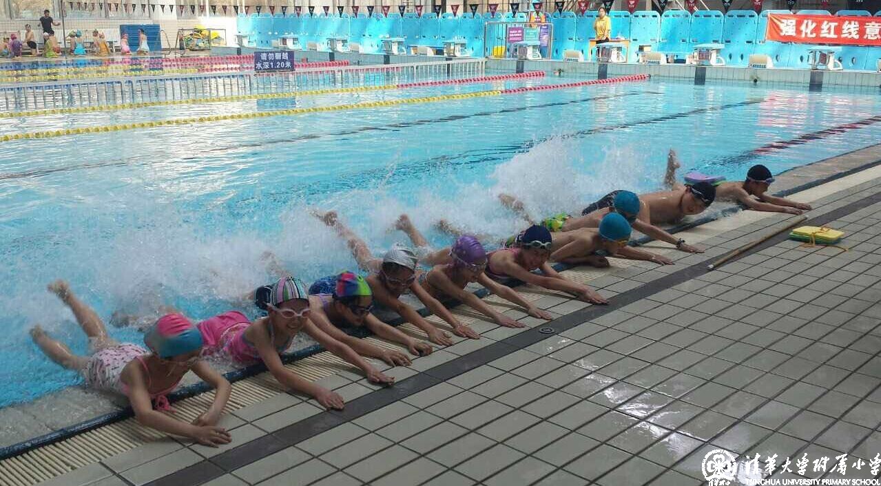 在清华附小构建实施的“1+X课程”中,体育成为学校的核心课程。清华附小的体育是以体育人的理念开展,儿童站在运动场的正中央。“每天体育三个一,健康工作五十年”,学校体育课程充分尊重儿童的个性和自主性,开始了足球、篮球、轮滑,健美操等九大项目。同时,为了给学生的成长提供更多的可能性,在大学体育部的支持下,本学期学校从四年级开设游泳课程。
